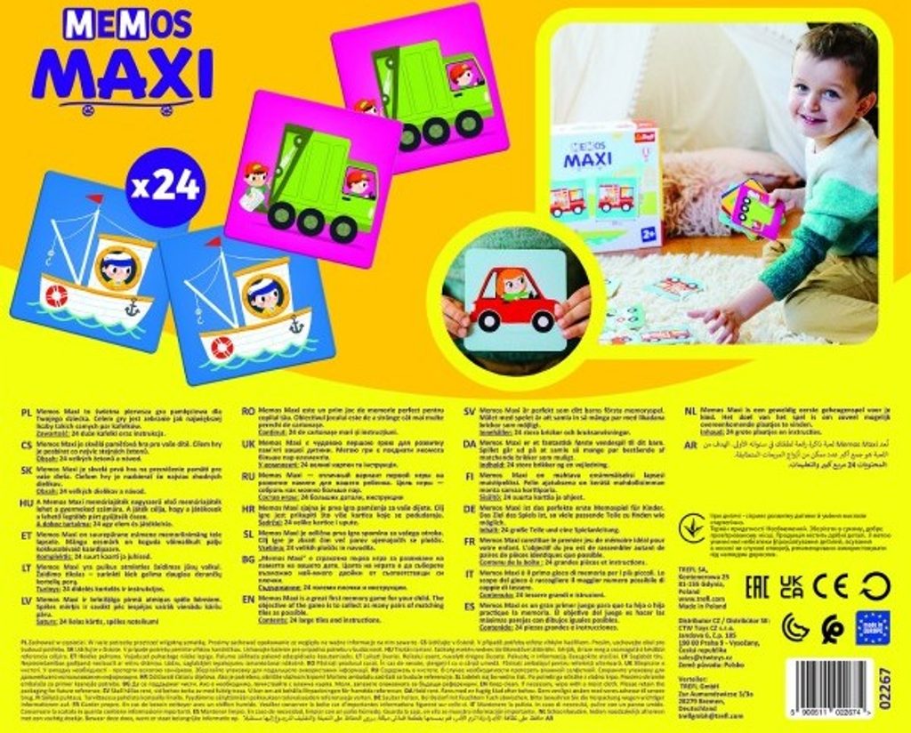 Memos Maxi je skvělá paměťová hra pro všechny děti. Cílem hry je posbírat co nejvíc stejných žetonů - klasické pexeso s velkými dílky (10 x 10 cm).