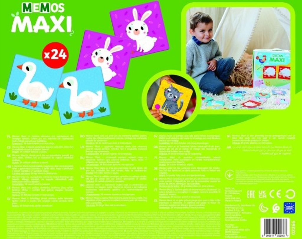 Memos Maxi je skvělá paměťová hra pro všechny děti. Cílem hry je posbírat co nejvíc stejných žetonů - klasické pexeso s velkými dílky (10 x 10 cm).