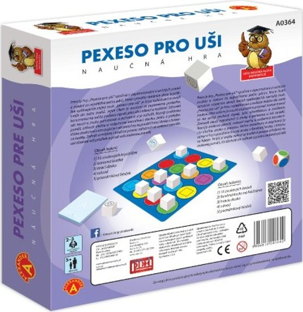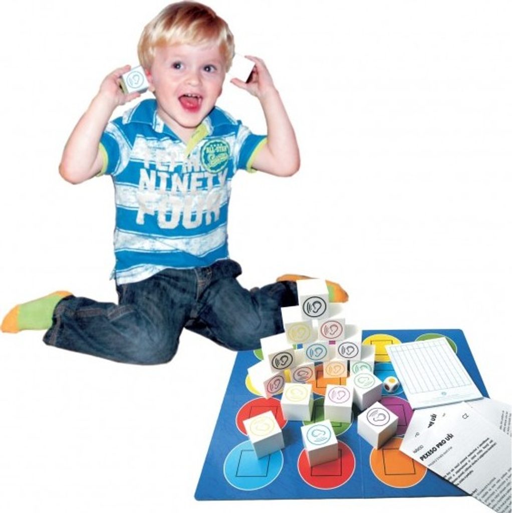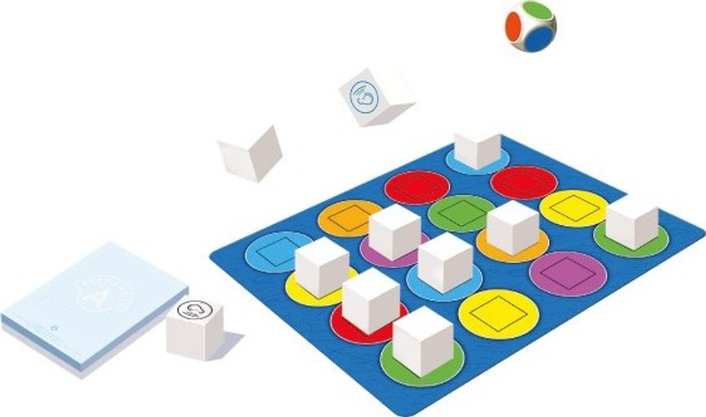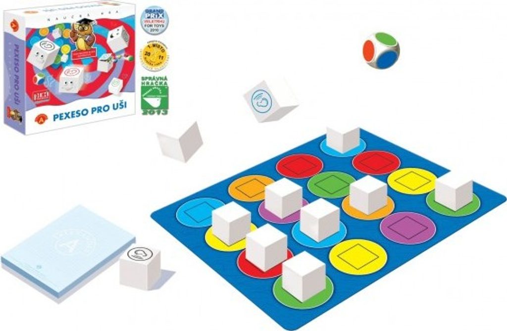 Děti hledají 2 kostky se stejným zvukem. Hra obsahuje i těžší variantu od 8 let se speciální barevnou hrací deskou. Obsahuje 16 zvukových krychliček, barevnou kostku, hrací desku, návod a poznámkový bloček.