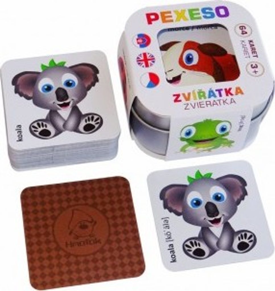 Česko - slovensko - anglické pexeso, 32 obrázků s českým a slovenským názvem a 32 obrázků s anglickým názvem a výslovností. Kartičky jsou vyrobeny z kvalitního karetního kartonu se speciálním karetním lakem, který zaručí opravdu dlouhou životnost kartiček.