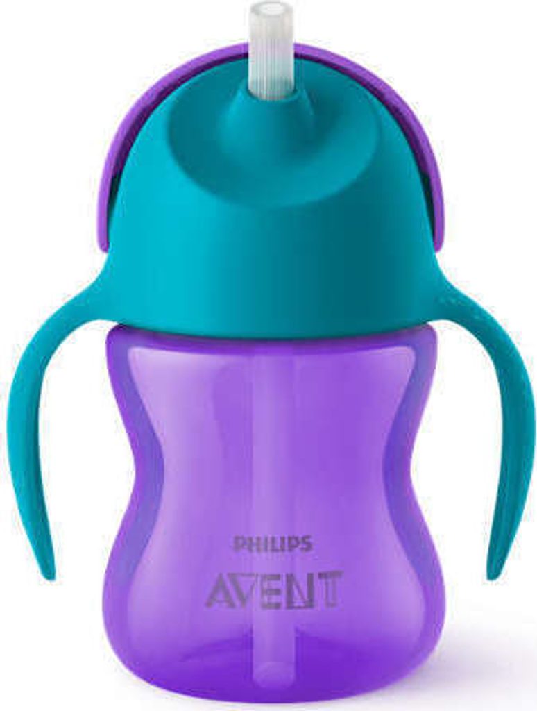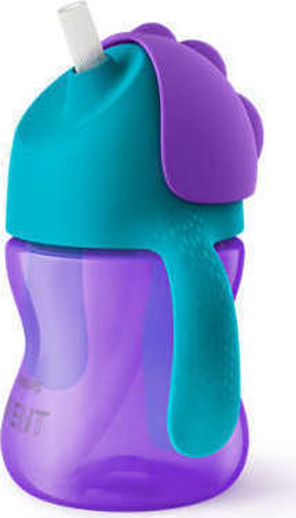 Pohárek má ergonomickou strukturu, která usnadňuje držení v rukou. Měkká a ohebná slámka je jemná pro dásně a malá velikost a hmotnost šálku jsou ideální pro učení se pít samostatně.