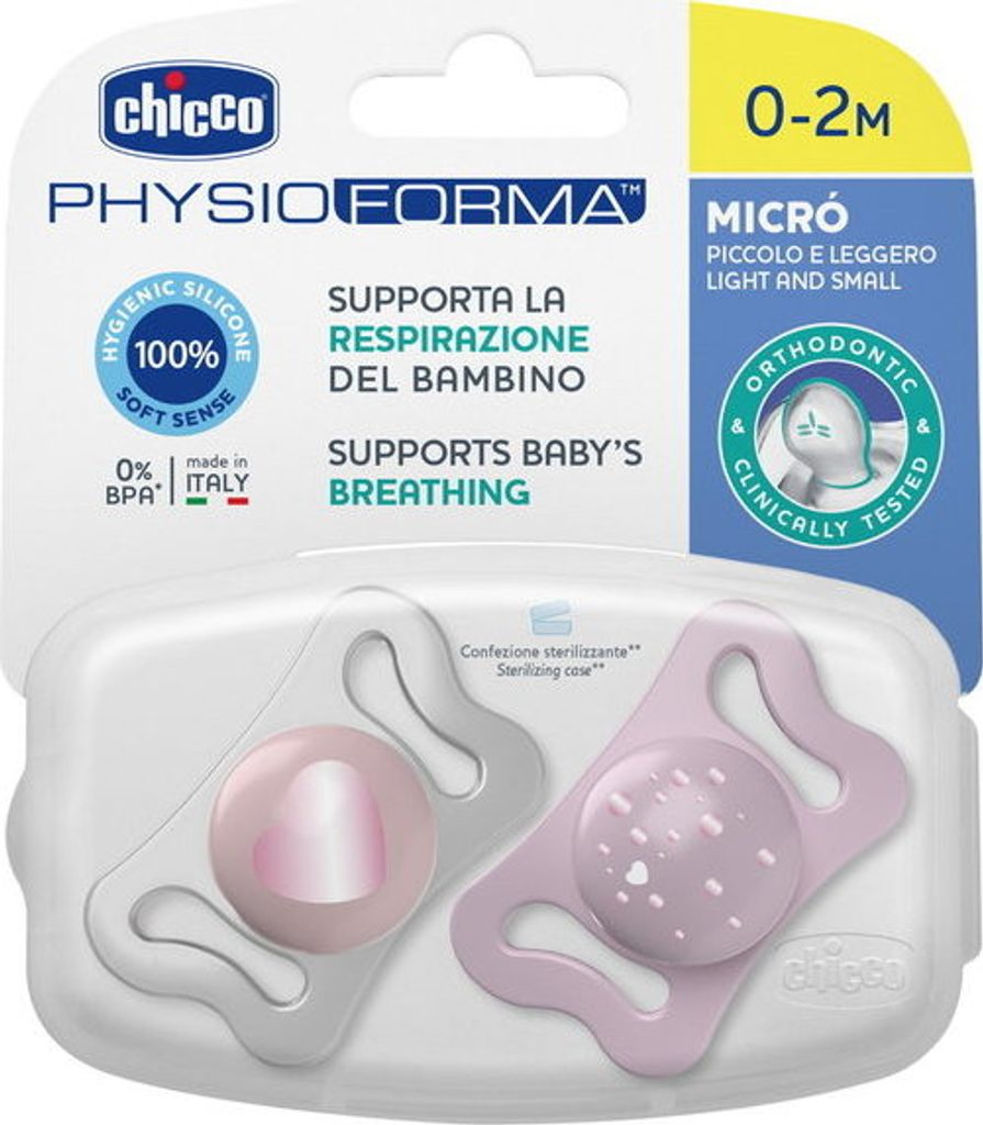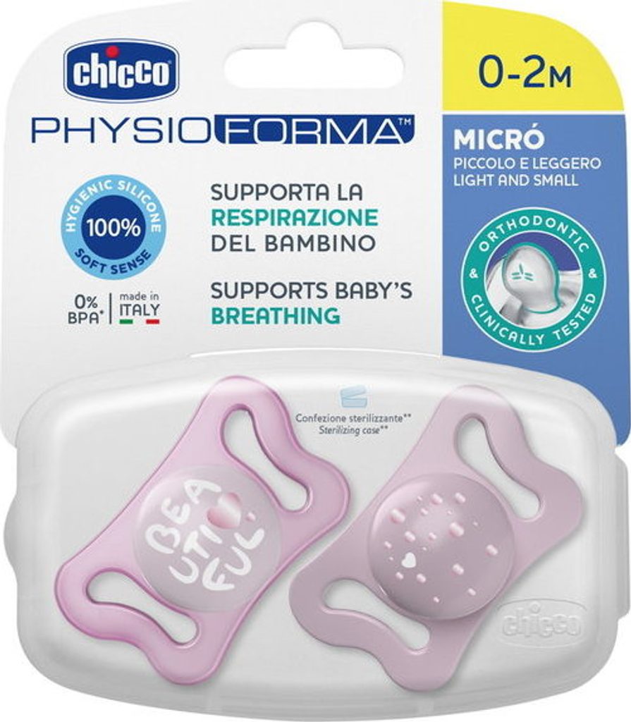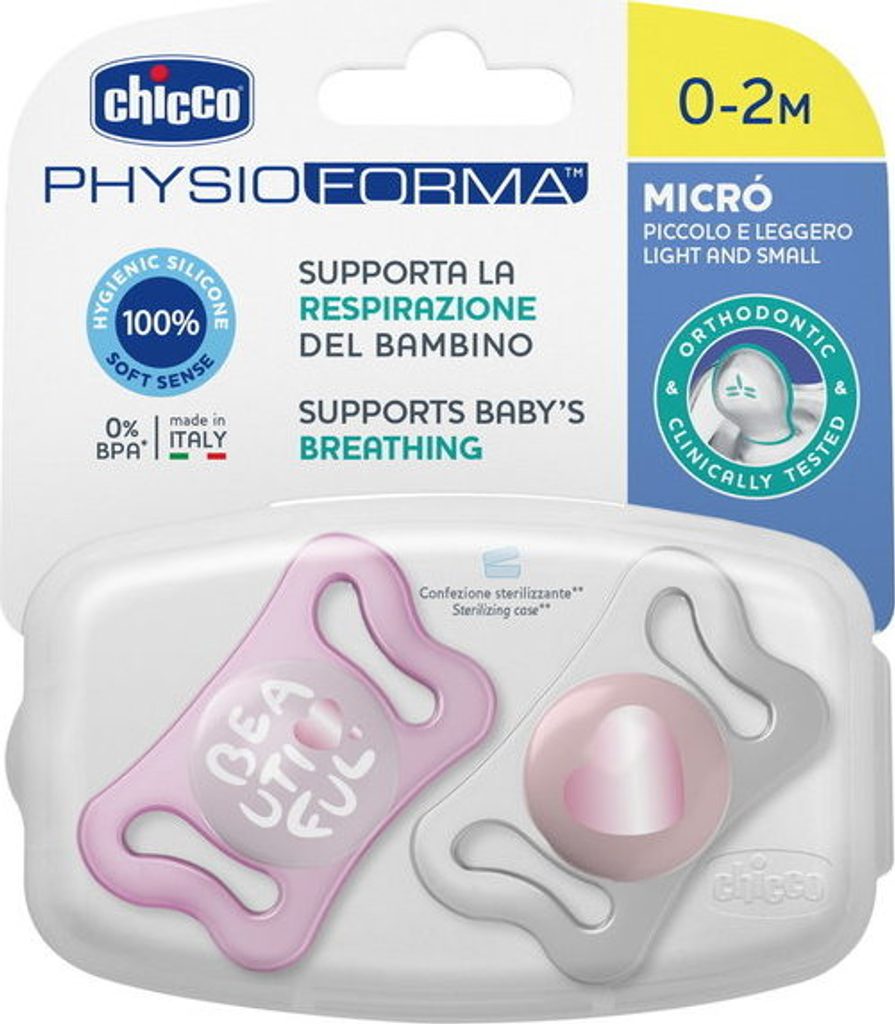 CHICCO Šidítko Physio Mini Soft celosilikonové 0-2m dívka 2 ks