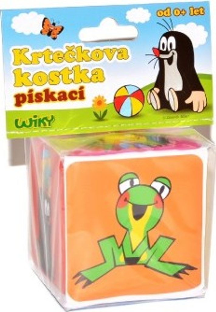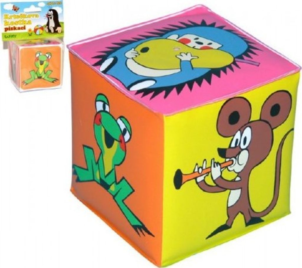 Pískací kostka z bezpečného materiálu pro miminka z kolekce s oblíbenými postavičkami Krtečka a jeho kamarádů přinese dětem velkou zábavu. Každá stěna kostky je jinak barevná a je na ní zobrazen buď Krteček nebo jeho kamarádi. Kostka vydává pískací zvuky.