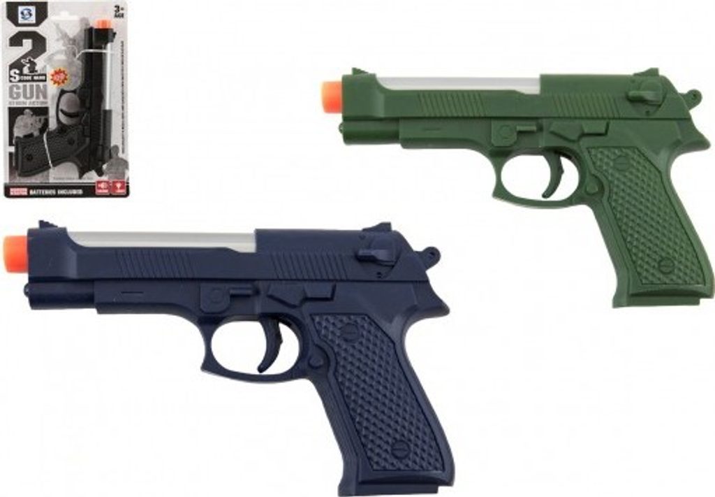 Pistole je reálně vypadající zbraň z plastu pro děti, zajisté se bude líbit všem klukům, kteří mají rádi zbraně. Po vložení baterií vydává zvuky a svítí. Baterie 2x AG10