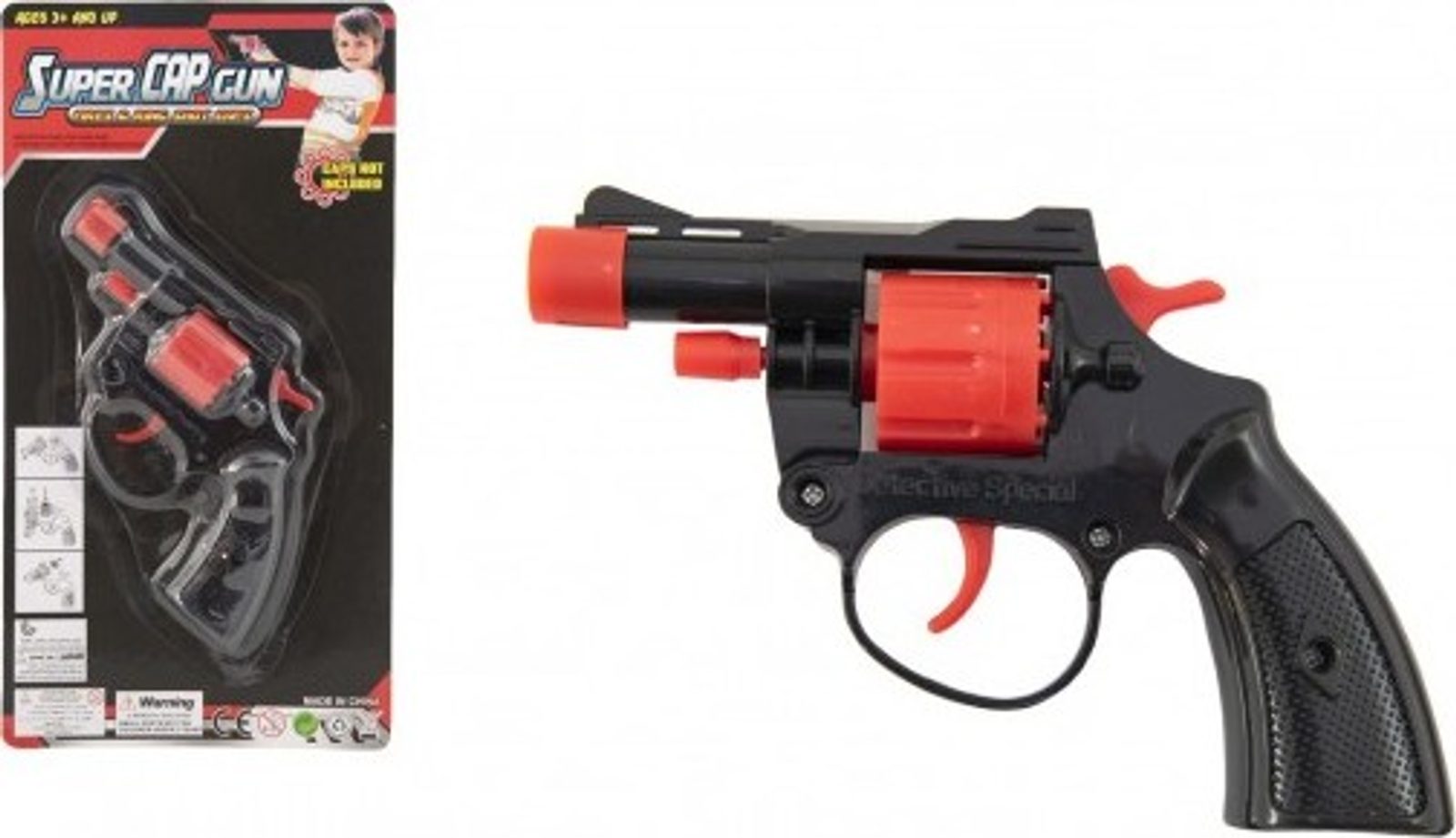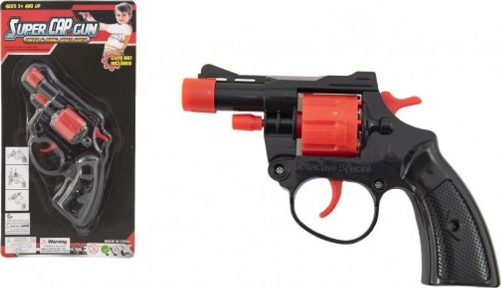 Tato pistolka vypadá jako opravdová. Pistole kapslovka pro všechny malé pistolníky. Kapslíky dodají zbrani ten správný zvuk při výstřelu. Kapsle 8 ran nejsou součástí balení. Velikost 13 cm.