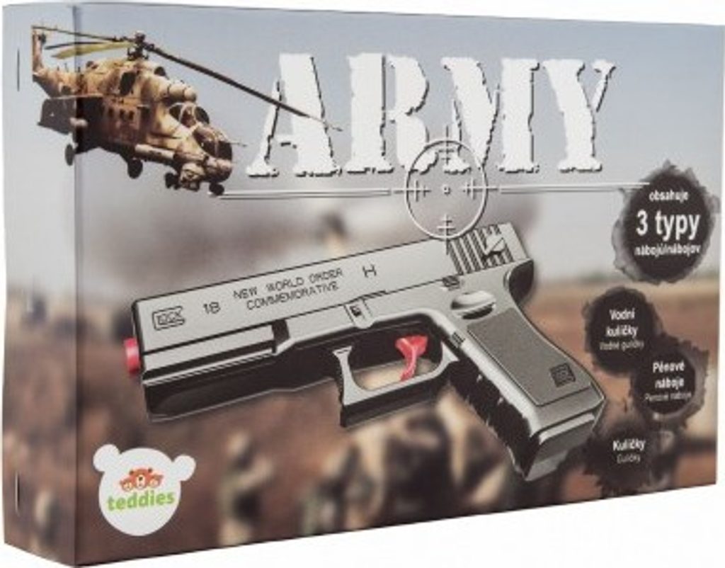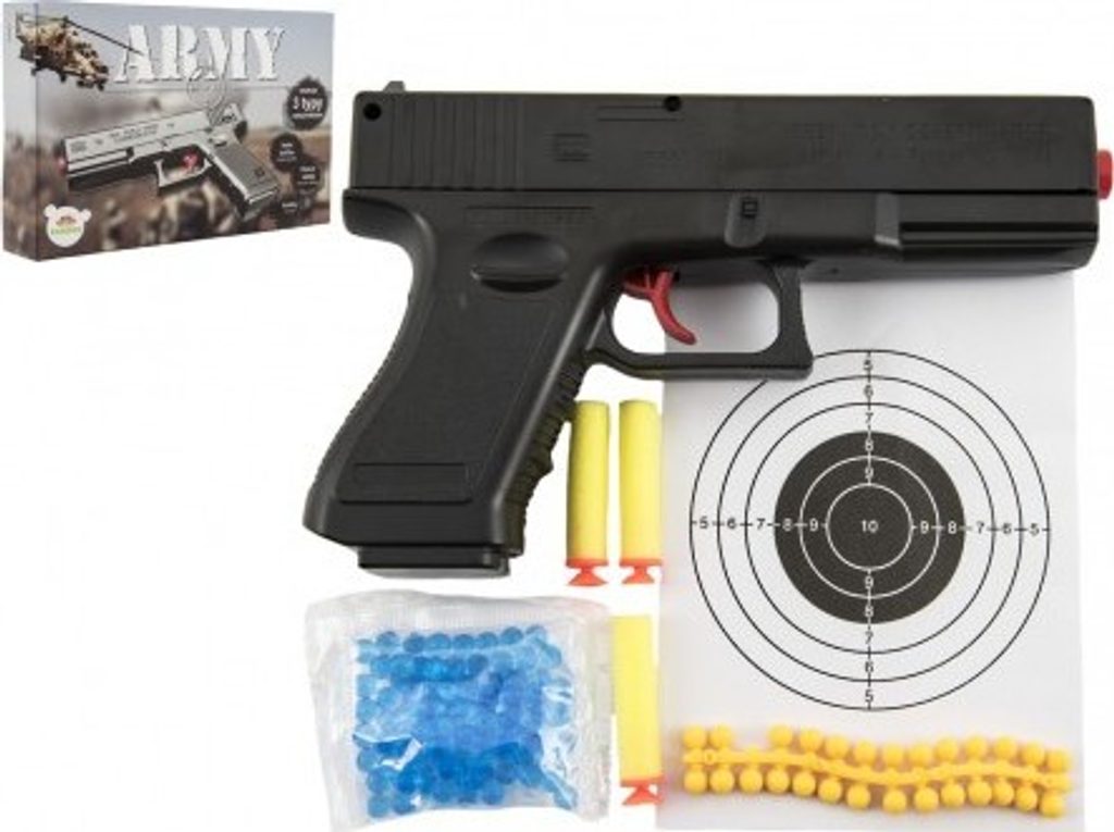 Hravá zábava především pro kluky! Pistole na pěnové náboje, vodní i gumové kuličky zabaví každého pistolníka. Vlož kuličky, nabij, zamiř a střílej. Velikost kuliček je 6 mm.
