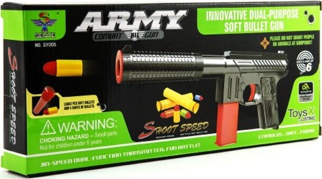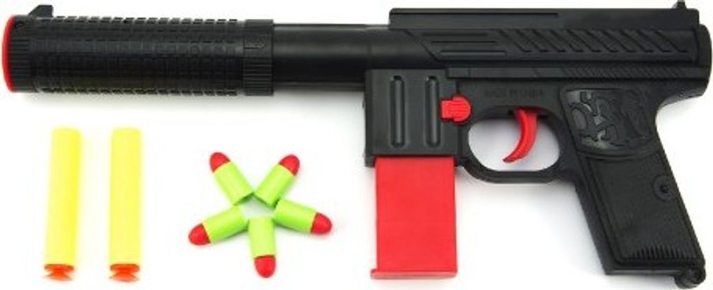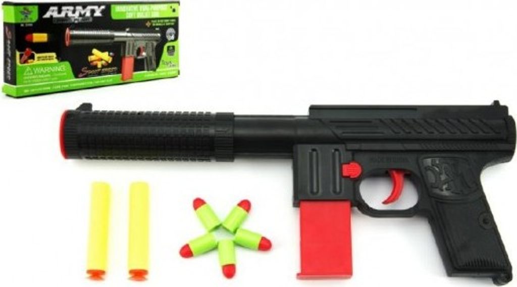 Sada obsahuje pistoli, která se bude líbit všem dětem, které si rády hrají se zbraněmi. Součástní jsou i pěnové náboje, které je možné z pistole střílet na jakýkoli terč.
