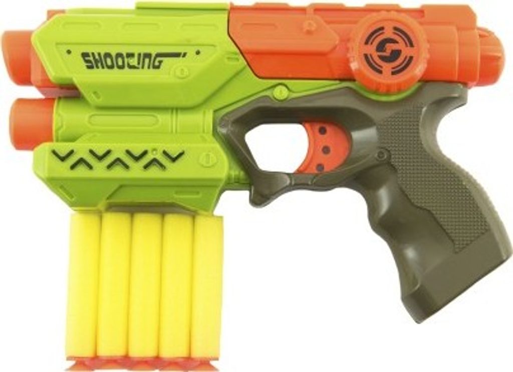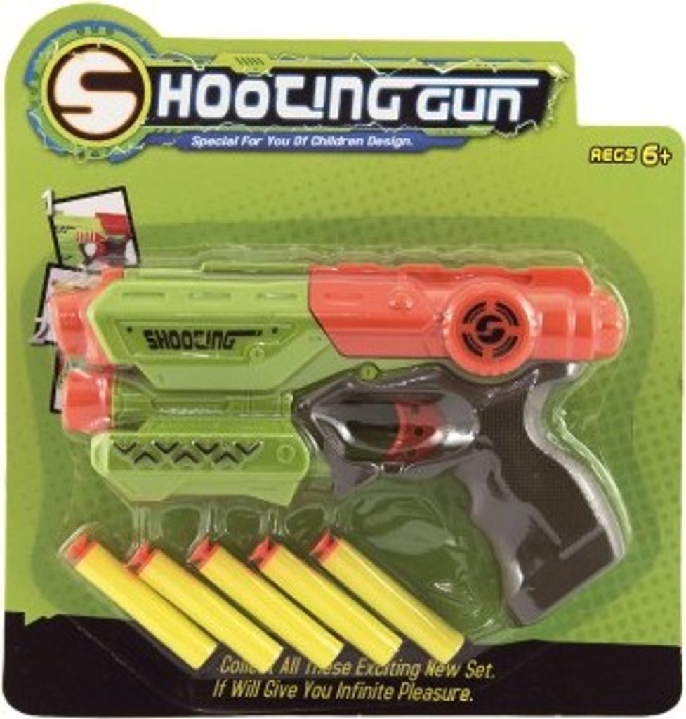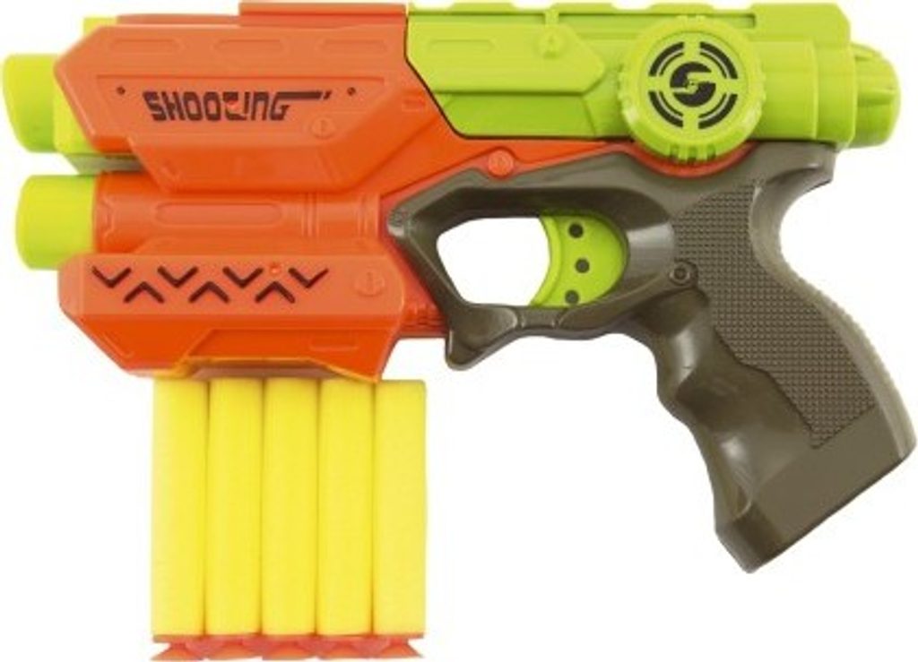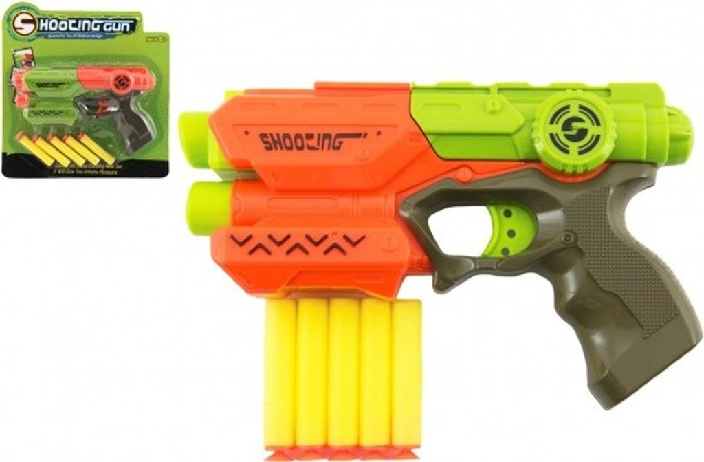 Hravá zábava nejen pro kluky! Pistole na pěnové náboje zabaví každého malého pistolníka. Náboj umístěte do komory pistole a natáhněte kohoutek. Teď už stačí jen dobře zamířit a vystřelit na jakýkoli cíl. Sada obsahuje 5 ks pěnových nábojů. Velikost pistole je cca 21 cm.