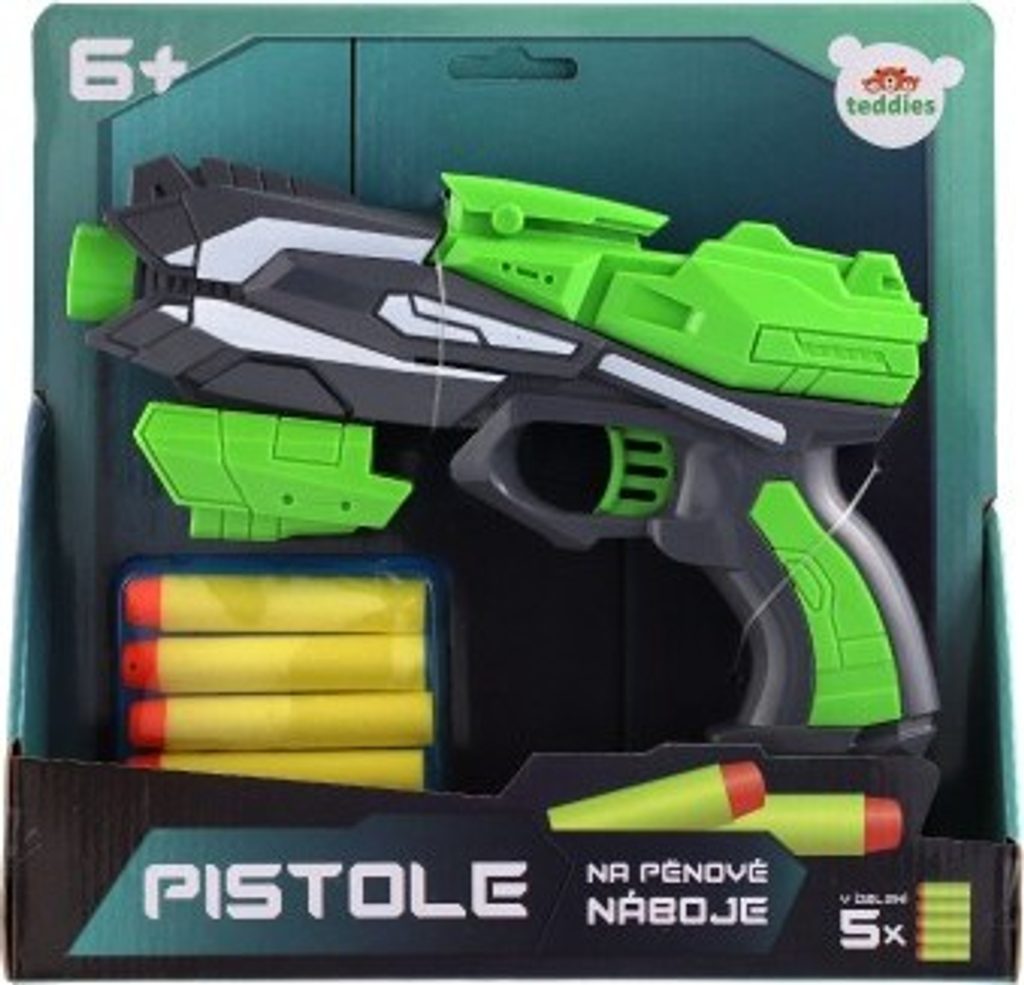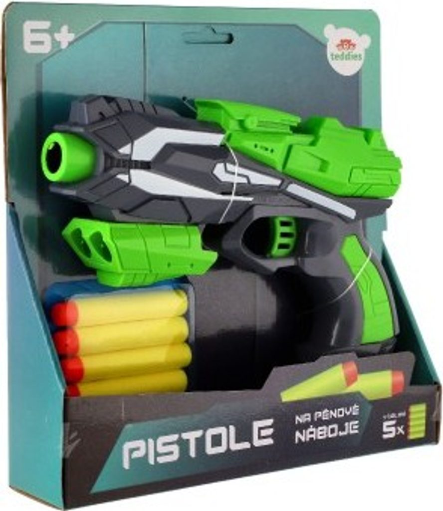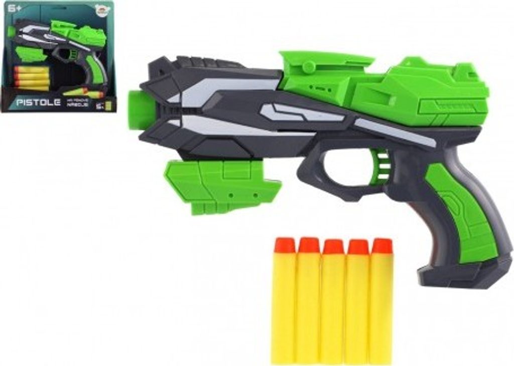 Hravá zábava nejen pro kluky! Stylová pistole na pěnové náboje zabaví každého malého pistolníka. Umístěte měkký pěnový náboj do hlavně pistole, zatáhněte za nabíjecí část, zamiřte na cíl a zmáčkněte spoušť!