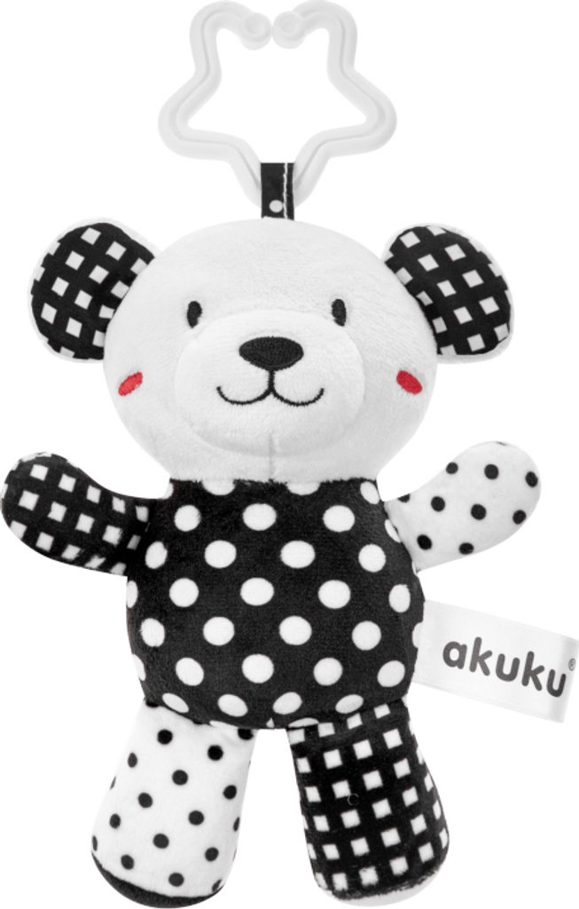 Plyšová hračka s chrastítkem Akuku medvídek černobílý