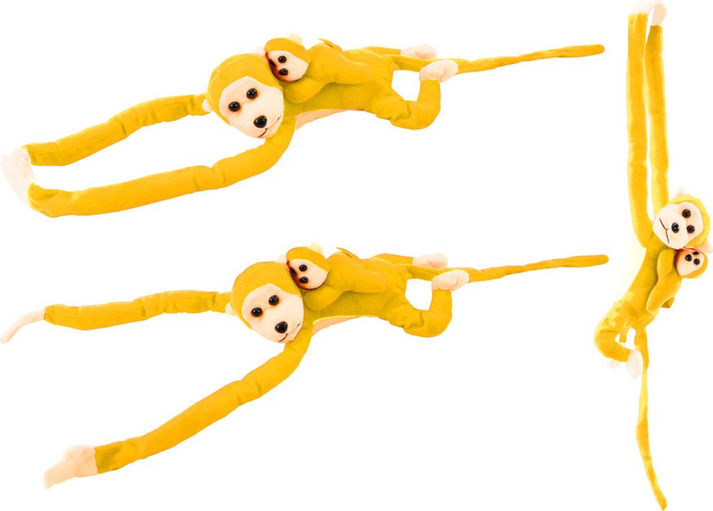 Plyšová opice s miminkem žlutá 90 cm