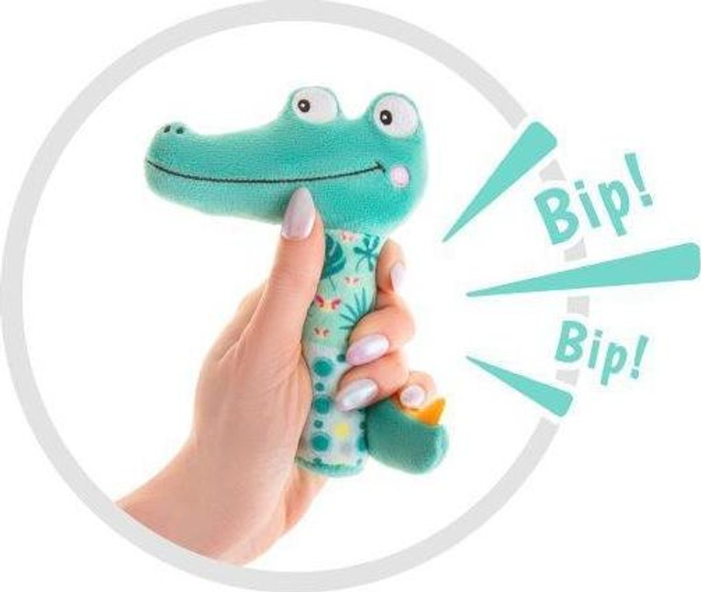 Plyšové chrastítko Krokodýl bezpochyby upoutá pozornost každého dítěte. Jeho barevné a zajímavé tvary jistě potěší každé dítě. Je vyrobeno z jemného, na dotek příjemného materiálu. Má interaktivní prvky, které podněcují dítě ke hře. Rozvíjí zrakovou, sluchovou a motorickou koordinaci dítěte. Velikost vhodná pro malé ručičky. Hračka je určena pro děti ve věku 0m+.