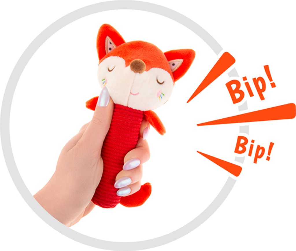 Plyšové chrastítko Liška bezpochyby upoutá pozornost každého dítěte. Jeho barevné a zajímavé tvary jistě potěší každé dítě. Je vyrobeno z jemného, na dotek příjemného materiálu. Má interaktivní prvky, které podněcují dítě ke hře. Rozvíjí zrakovou, sluchovou a motorickou koordinaci dítěte. Velikost vhodná pro malé ručičky. Hračka je určena pro děti ve věku 0m+.