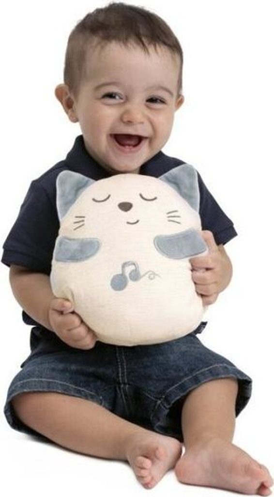 Tento plyšový mazlíček je vyrobený z materiálu příjemného na dotek.Hračka pomáhá dítěti relaxovat díky uklidňujícím zvukům (zvuky vrnění o frekvenci dobré pro zdraví a klasická hudba) a rytmickému pohybu.