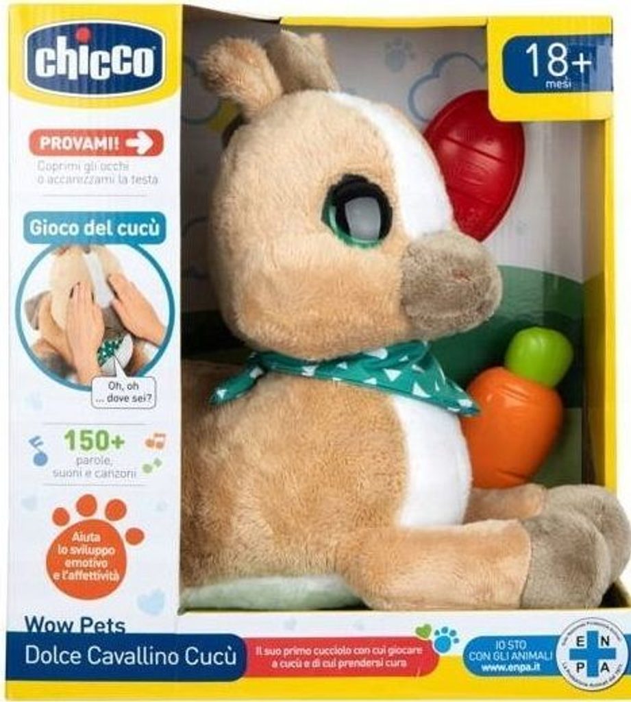 Poník A Kuku z řady Wow Pets je interaktivní plyšová hračka, se kterou si vaše dítě může zahrát oblíbenou hru „a kuku“. Zakrývejte a odkrývejte oči hračky a užívejte si zábavu společně!