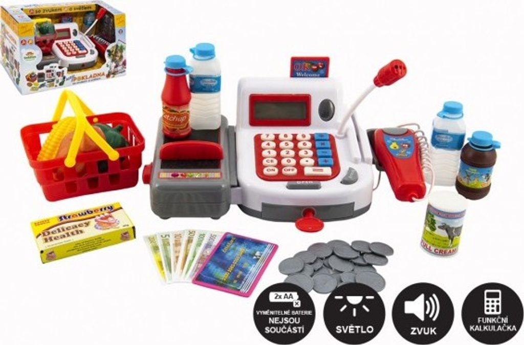 Elektronická pokladna pro děti + košík + 26 doplňků! Každé dítě si rádo hraje…