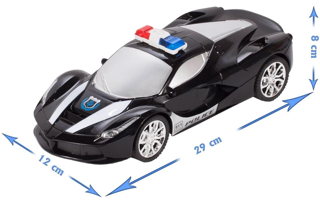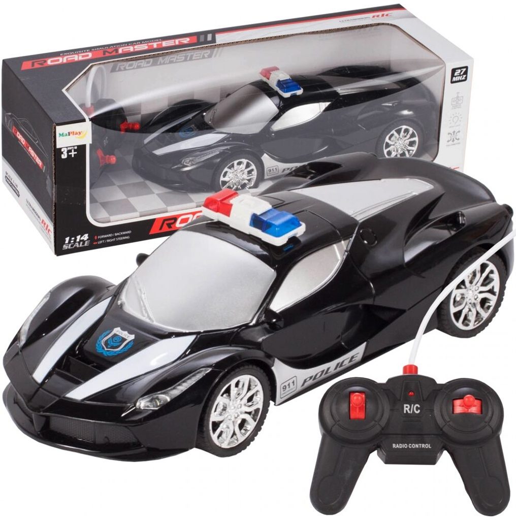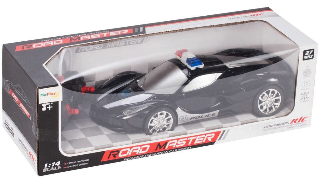 Policejní autíčko Road Master na dálkové ovládání s dálkovým ovládáním 27 MHz se vzhledem sportovního vozu umožnuje jízdu dopředu a dozadu, zatáčí doprava a doleva. Dálkové ovládání i autíčko jsou napájeny bateriemi, které nejsou součástí balení. Autíčko je vyrobeno z plastu a má certifikaci CE.