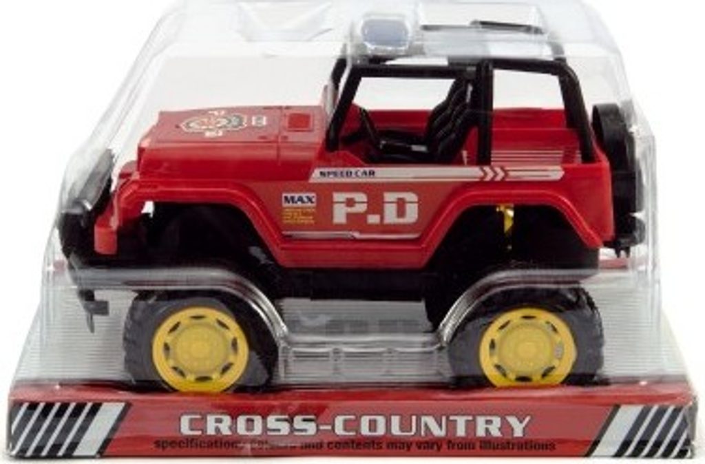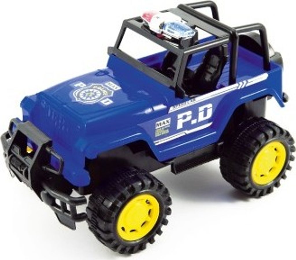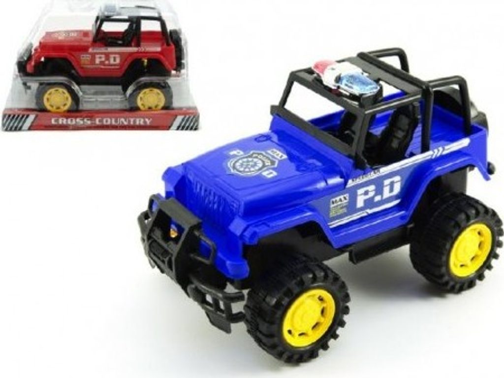 Plastový policejní jeep na setrvačník. S tímto už vám neujede žádný lump v terénu.