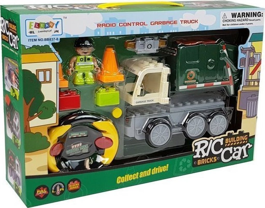 Dálkově ovládané popelářské auto je zárukou skvělé zábavy pro každého malého kluka. Díky tomuto vozidlu se každé dítě může cítit jako skutečný řidič vozidla. Tato hračka je realistickým modelem popelářského vozu postaveného z kostek. Vozidlo je skvělá zábava, která rozvíjí fantazii, manuální zručnost a smysl malého kluka! Vaše dítě se díky hračce seznámí se světem vědy a dálkově ovládanými modely. Sada se skládá z 12 dílů s dálkovým ovladačem.