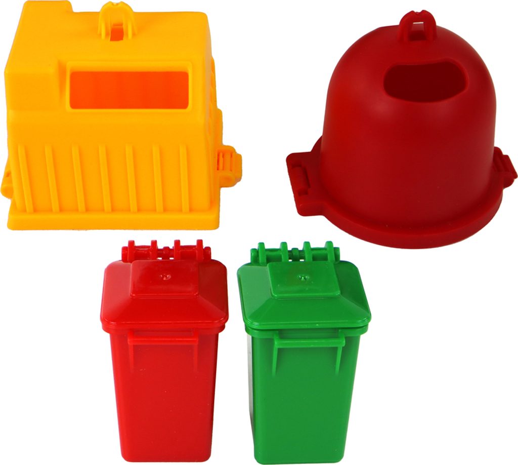 Sada obsahuje 2 nádoby na odpadky, 2 odpadkové koše a 4 obrázkové tabule znázorňující různé druhy odpadu. Děti se tak učí o třídění odpadu zábavnou a přístupnou formou.