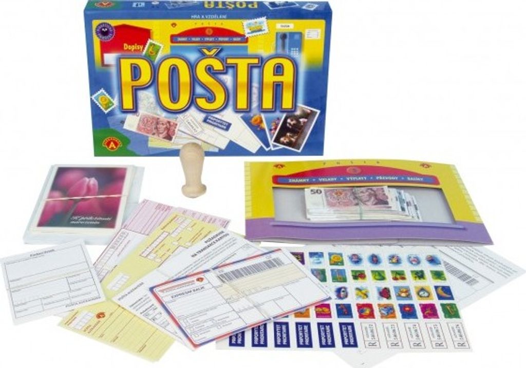 Rozlož poštovní přepážku, vyndej peníze, známky, obálky, složenky, podací lístky, pohlednice i razítko a hra může začít. Nevíš si rady s vyplněním složenky nebo adresy? Pomůžou Ti návody k jednotlivým formulářům. Na poště už se neztratíš!