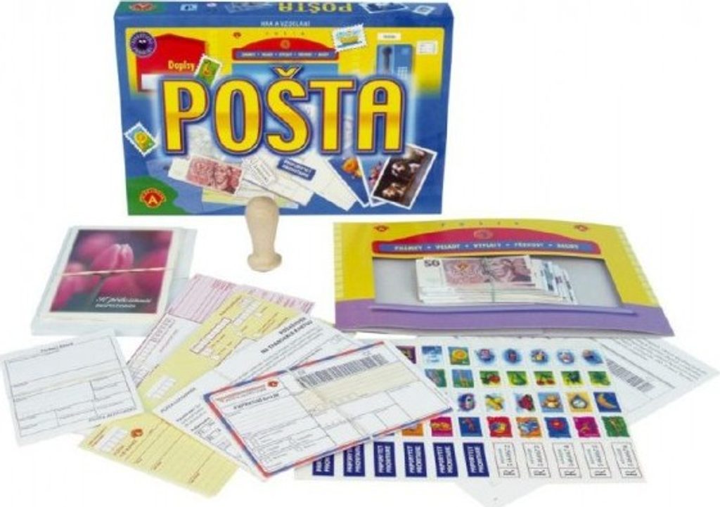 Balení obsahuje: Dřevěné razítko, rozkládací poštovní přepážku, barevné složenky, dopisní obálky, podací lístky, pohlednice, šeky na výběry a odeslání peněz, poštovní samolepící známky, 98ks českých bankovek, Český návod s ukázkami na vyplňování všech formulářů.