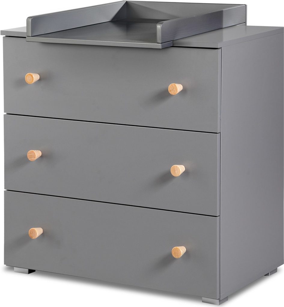 Praktická přebalovací komoda Klups Pauline Dub/Grafit se třemi šuplíky. K…