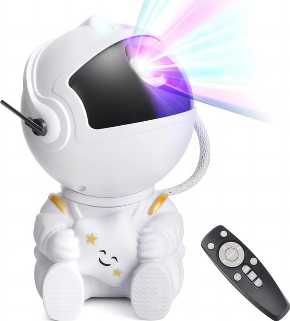 Projektor hvězd Astronaut je jedinečná dekorace, která vnese kouzelnou atmosféru do každého interiéru, zejména do dětského pokoje. Díky této lampě se strop, stěny a okna promění v hvězdnou oblohu a vytvoří jedinečnou atmosféru napomáhající relaxaci a klidnému spánku. Lampa dokonale reprodukuje hvězdy a galaxie, což vám umožní vychutnat si krásu noční oblohy v pohodlí vašeho domova.