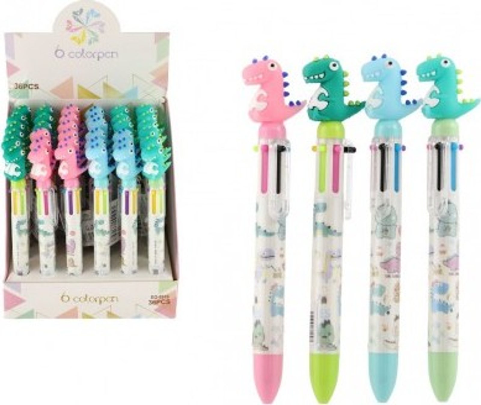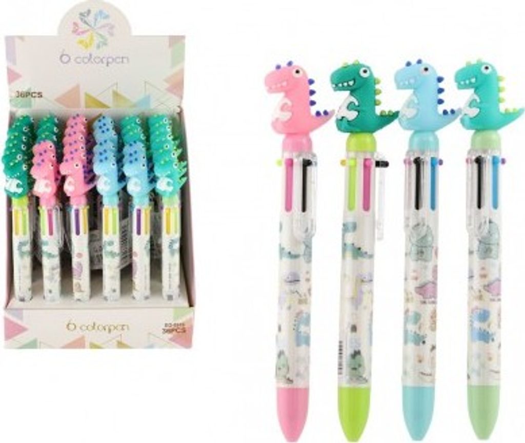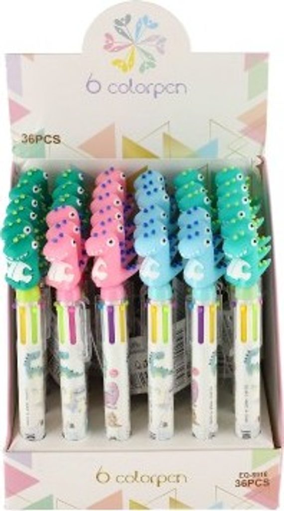 Nápaditá propiska s motivem dinosaura prostě baví! Uvnitř se ukrývá 6 barevných tuh, které lze libovolně měnit. Děti si ji oblíbí jak do školy, tak na doma. Změň barvu stlačením černé tuhy.