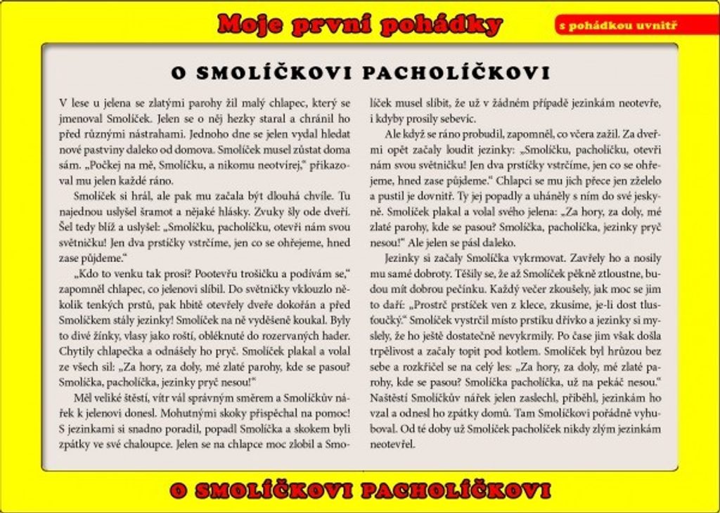 Deskové puzzle O Smolíčkovi Pacholíčkovi je perfektním spojením pohádky a stavění puzzle, které děti milují. Pod sestaveným obrázkem s motivem tradiční české pohádky ji najdete psanou.