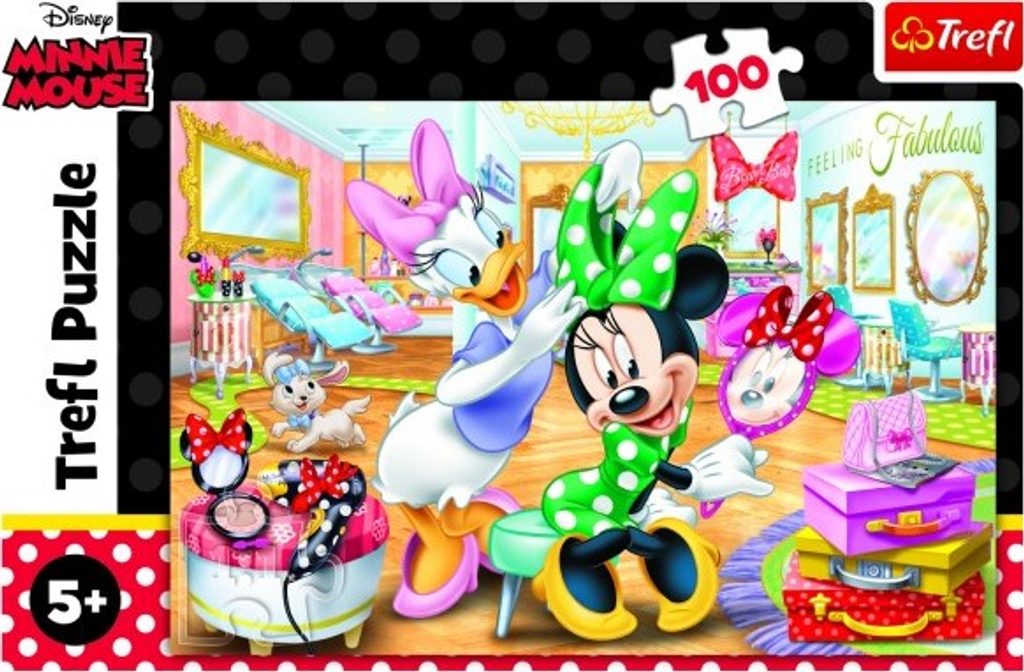 PUZZLE TREFL Puzzle Minnie Disney v salónu krásy 41x27,5cm 100 dílků v krabici 29x19x4cm