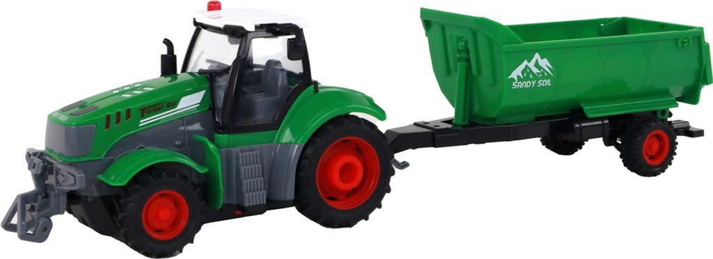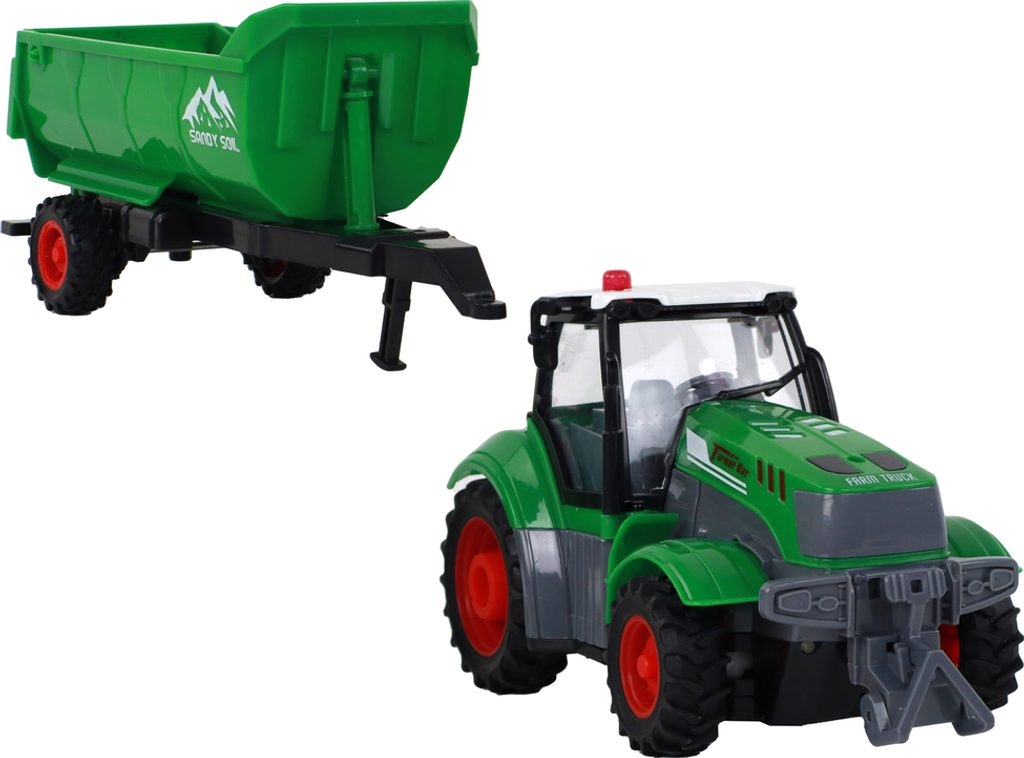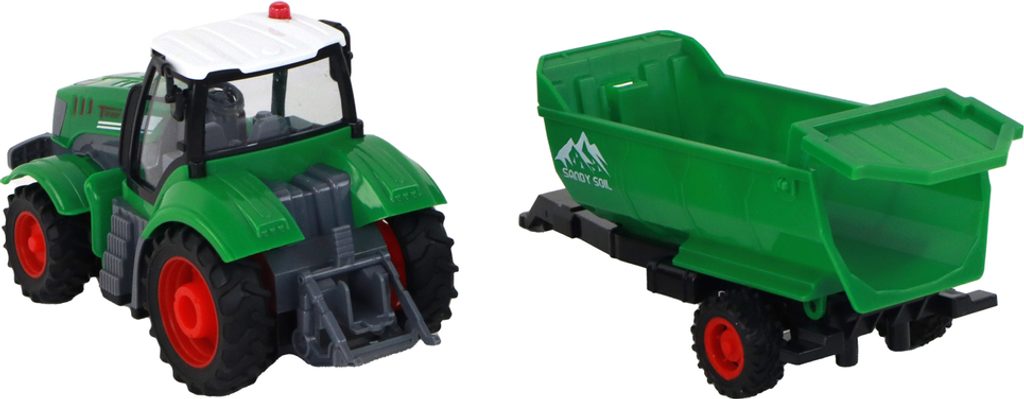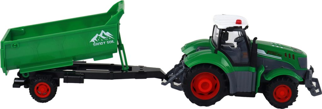 Rozměry traktoru jsou: 21 cm x 11 cm x 9 cm a přívěsu: 22,5 cm x 9 cm x 9 cm. Má správnou velikost pro malé dětské ručičky, díky čemuž je dokonalou hračkou pro interaktivní venkovní hraní.