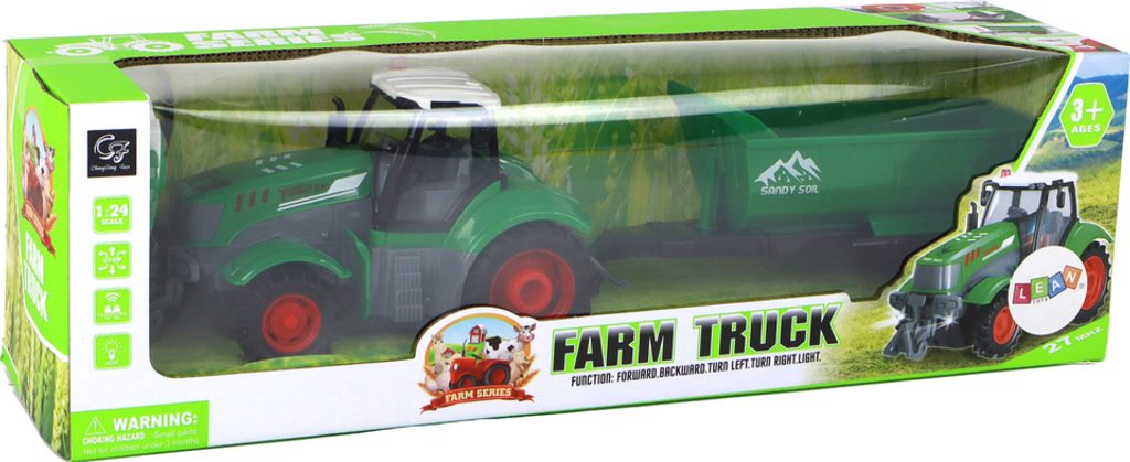 Pomocí dálkového ovladače, jehož rozměry jsou: 26 cm x 3 cm x 10,5 cm, můžeme ovládat traktor vpřed, vzad i do stran, což umožňuje nejrůznější manévry a akce.