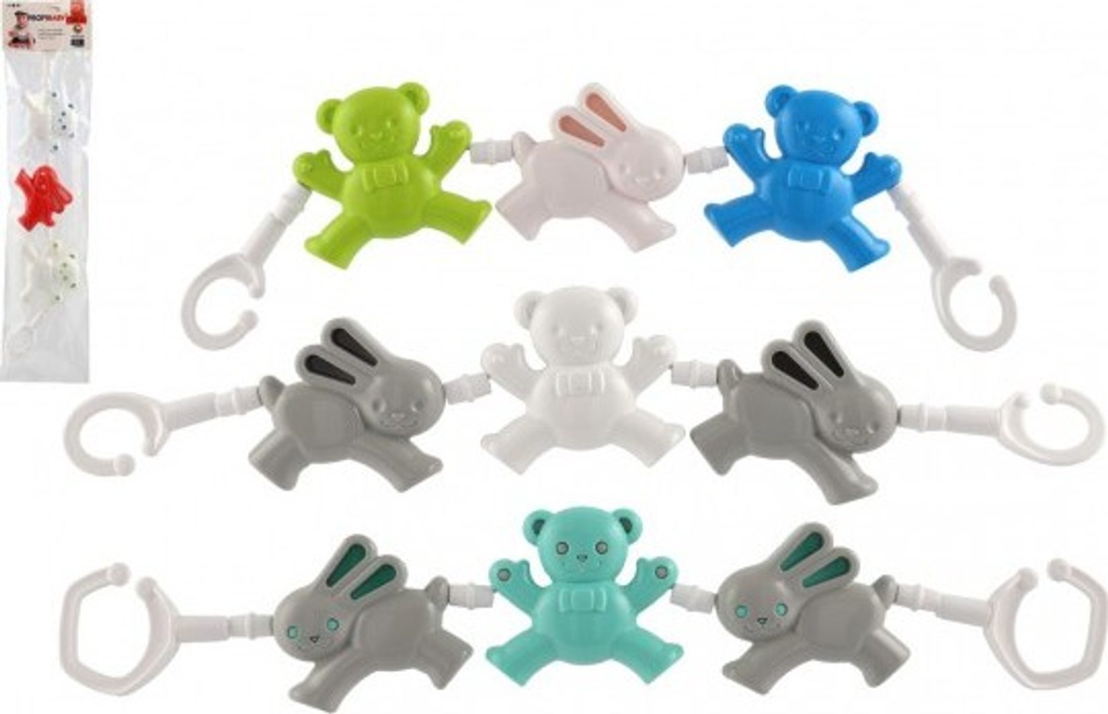Plastový řetěz na kočárek se zvířátky zabaví děti při jízdě v kočárku. Různé tvary a materiály rozvíjí jemnou motoriku, veselé barvy rozvíjí dětské smysly. MIX variant zboží, odesíláme náhodně. Jestliže si přejete určitou variantu, napište nám poznámku v posledním kroku objednávky. Pokud bude varianta dostupná, odešleme dle vašeho požadavku.