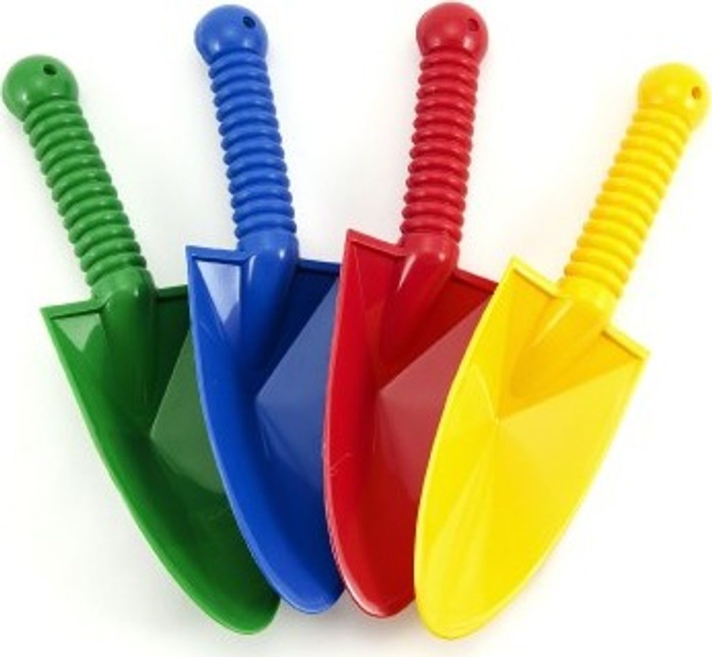 Lopatka/rýč na písek, která dětem usnadní stavění velkých hradů z písku.