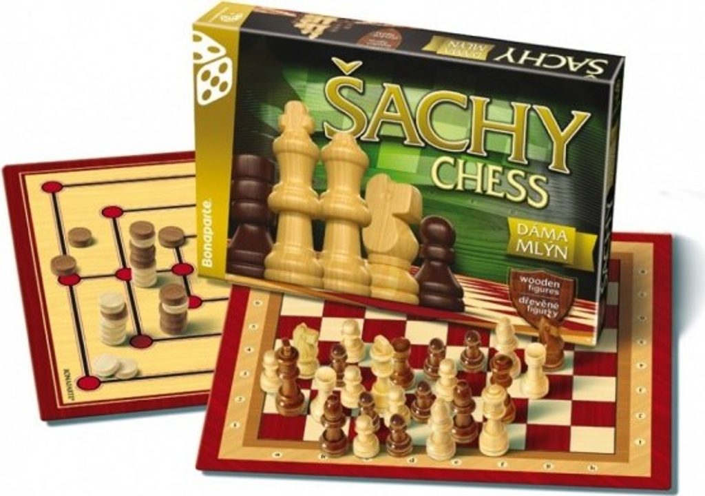 Set obsahuje tři oblíbené deskové hry: šachy, dáma, mlýn. Šachové figurky …