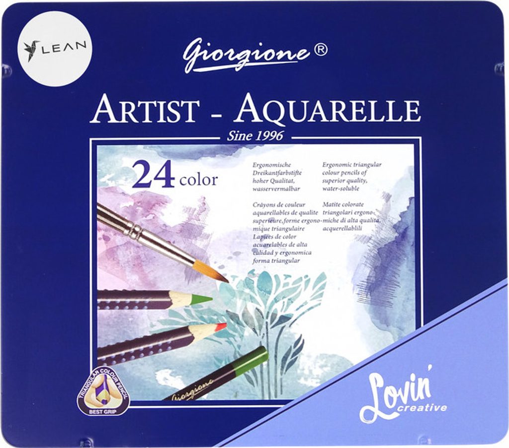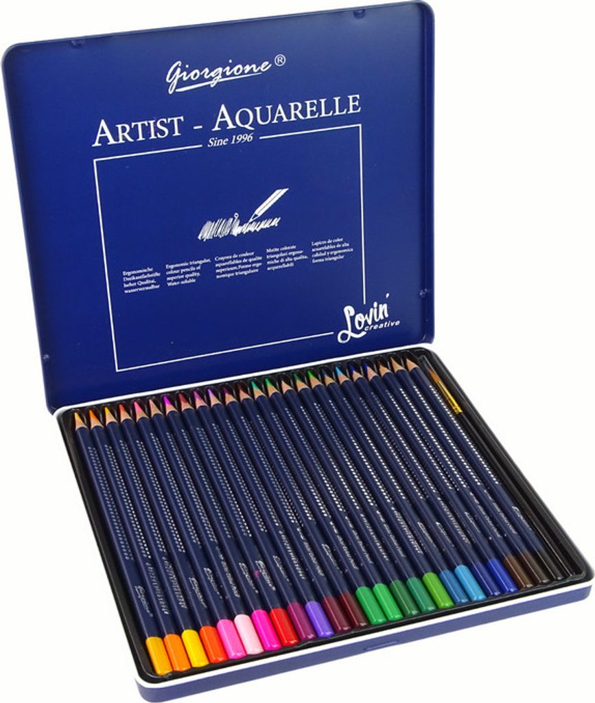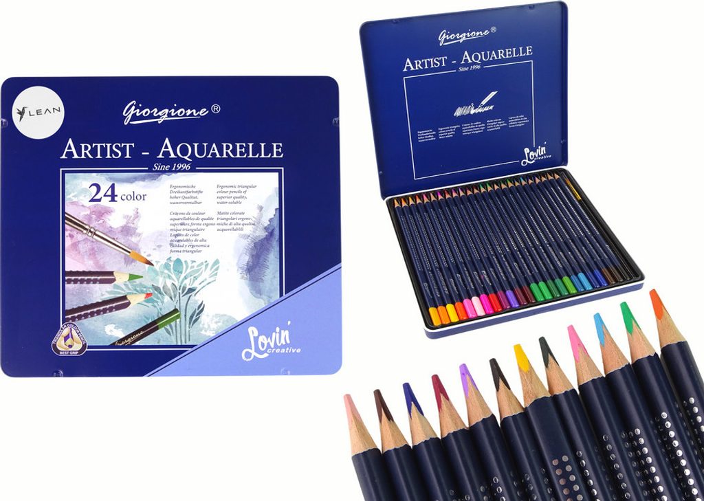 Sada 24 akvarelových tužek v elegantním, tmavě modrém kovovém obalu je perfektní pomůckou pro milovníky malování a kreativity. Každá pastelka je dlouhá 17 cm a poskytuje intenzivní barvy, které oživí vaše výtvory.