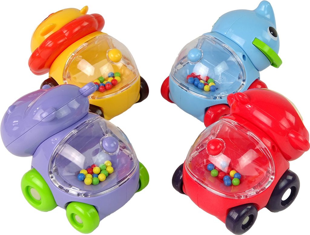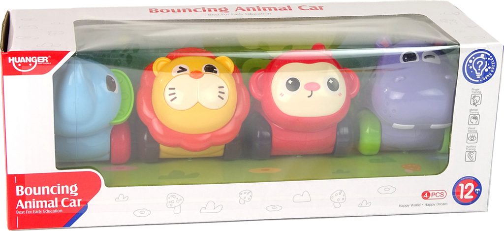 Sada se skládá ze čtyř barevných vozidel ve tvaru zvířat. Každé z nich je plné malých barevných kuliček, které se při jízdě točí, což vytváří skvělé vizuální efekty povzbuzující ke hře.