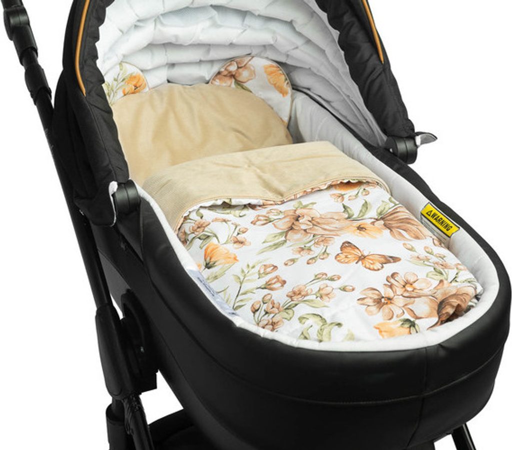 Sada obsahuje krásný polštářek s ušima medvídka a peřinku s jemnou výplní ze silikonového rouna. Oboustranná souprava je vyrobena z kvalitních materiálů - barevné bavlny a velmi příjemné sametové látky, která ukolébá každé batole. Sada je ideální pro použití v kočárku, postýlce, kolébce nebo jako podložka pro miminko.