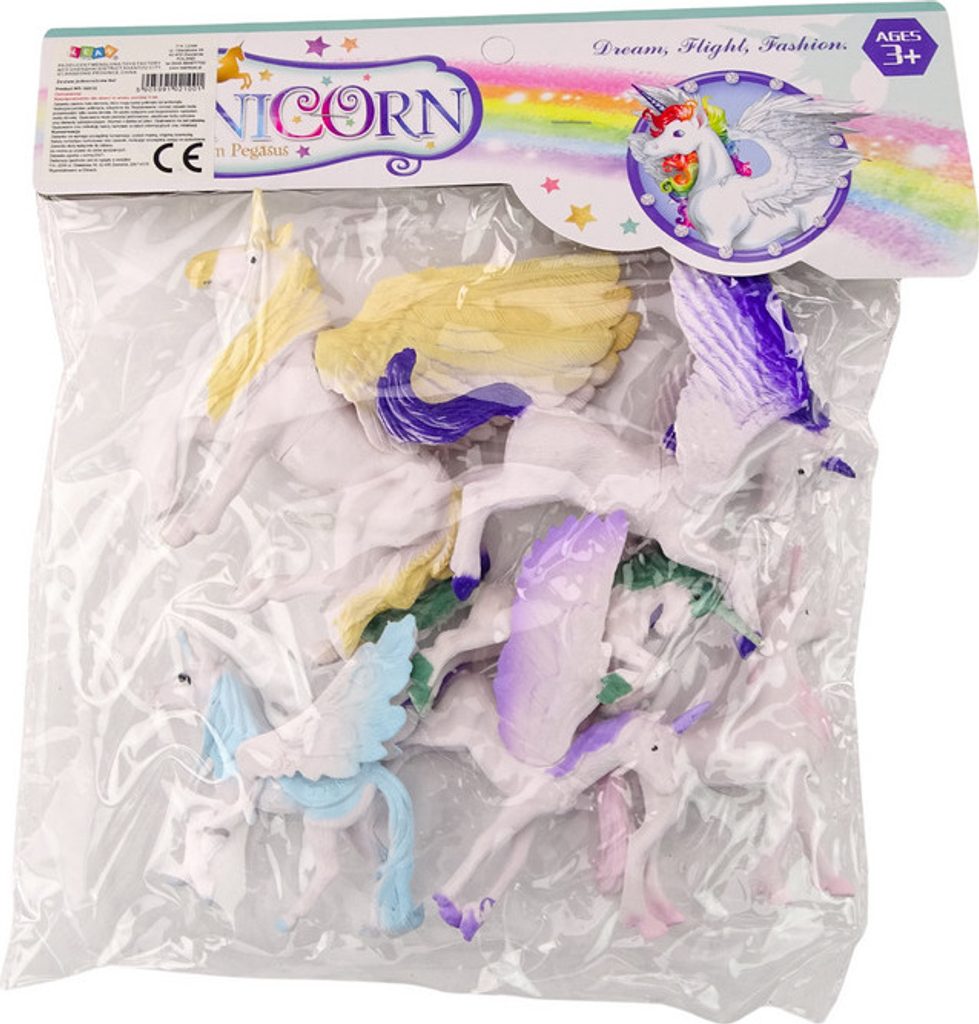 Mimořádná sada figurek jednorožců a pegasů, která potěší každého milovníka magie a fantazie. Každá figurka je vybavena krásnými, roztaženými křídly, která jí dodávají majestátní vzhled odkazující na bájného Pegase. Křídla jsou detailní, s výrazným peřím, což dodává realistický a magický charakter.
