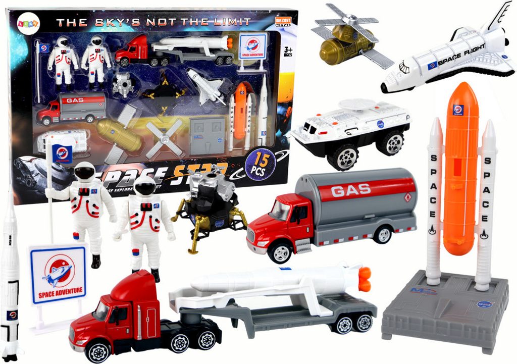 V naší sadě hraček s vesmírnou tématikou na vás čeká skutečné vzrušující dobrodružství! Tato sada je skutečnou zábavou se spoustou fascinujících prvků a doplňků, které vás vezmou na cestu vesmírem. Najdete v něm dva odvážné kosmonauty připravené objevovat vesmírná tajemství. A co ještě? Samozřejmostí je vesmírná raketa připravená ke startu, vesmírné vozidlo pro cestování po cizí planetě, satelity dohlížející na vesmír a dokonce i vesmírná loď, kterou lze ve hře libovolně používat.