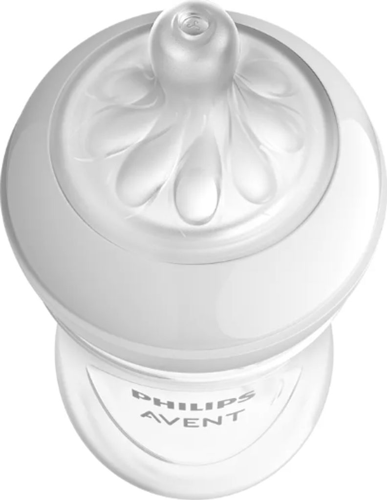 Dvě kojenecké lahve Avent Natural Response, antikolikový ventil snižuje množství vzduchu v dudlíku