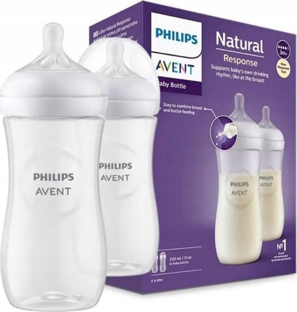 Obsah sady: Natural Response plastová láhev 330 ml: 2 ks. dudlík 3m+ (úroveň 4): 2 ks. plastový uzávěr láhve: 2 ks Lahve jsou originálně zabalené