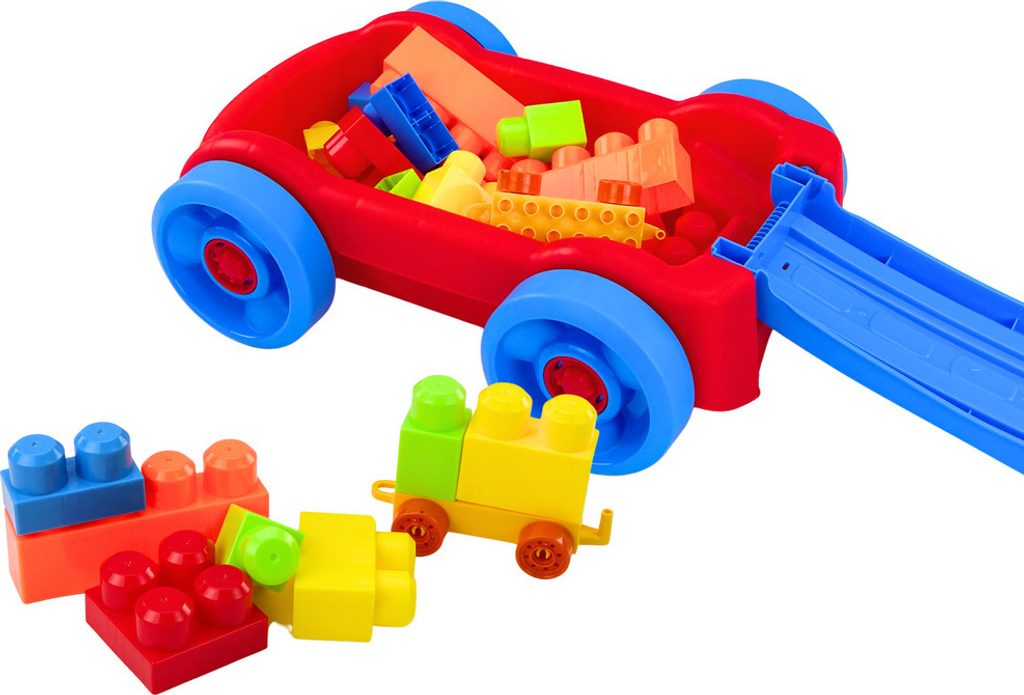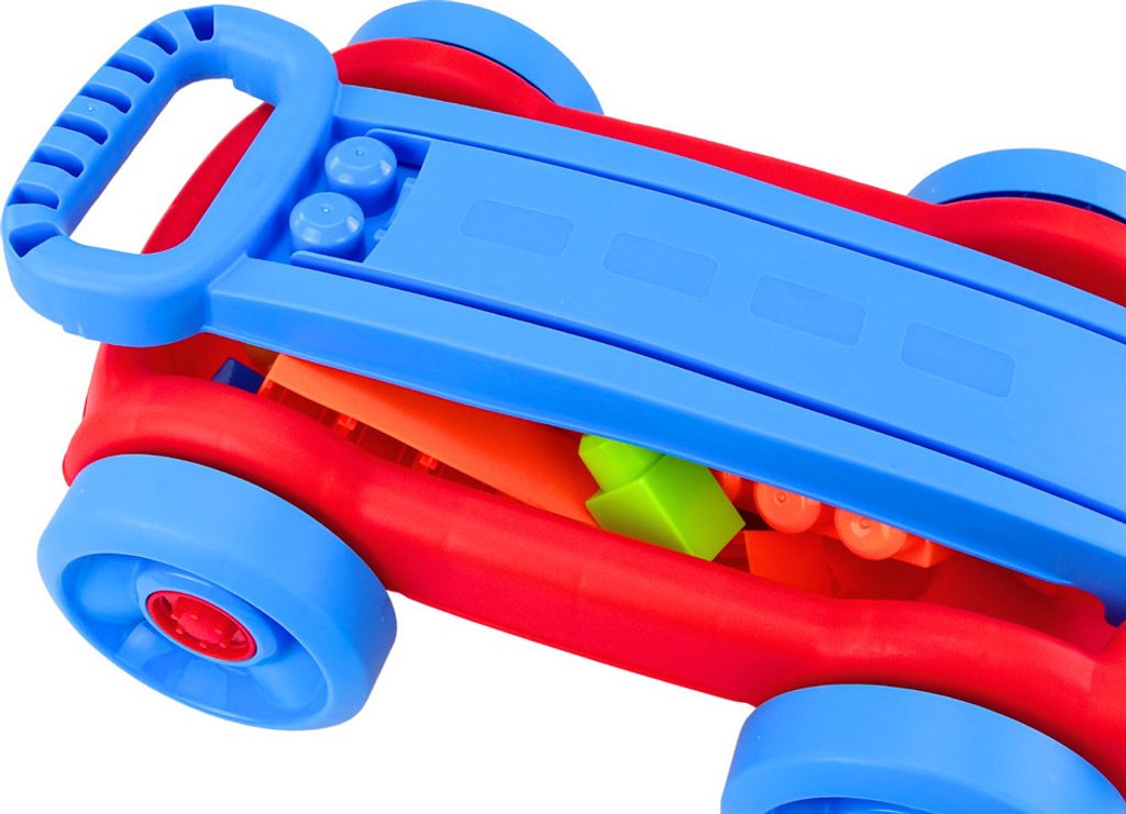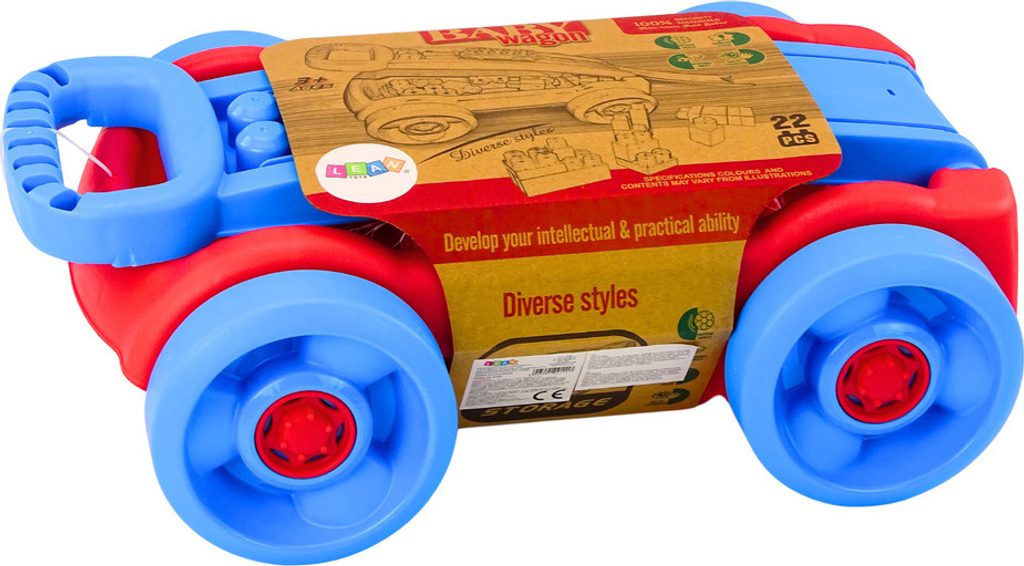 Vozík s kostkami je perfektním nástrojem pro zábavu a organizaci pro nejmenší průzkumníky. Pevný, plastový vozík na čtyřech kolech v modro-červené kombinaci je lehký a snadno se tlačí i pro nejmenší. Díky němu mohou děti snadno přepravovat své oblíbené kostky a vytvářet tak jedinečné struktury, kam chtějí.