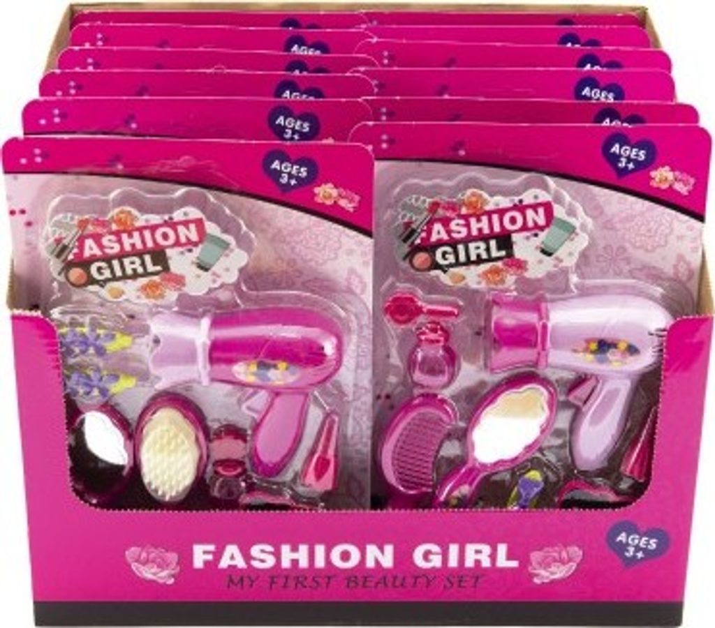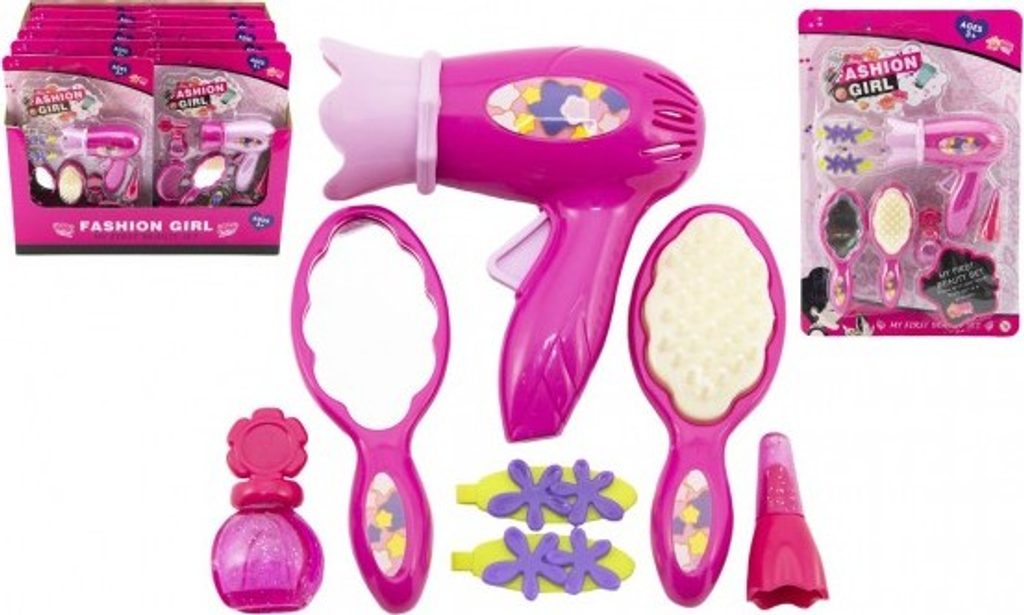 Každá malá parádnice musí mít ve své sbírce tuto sadu krásy s fénem a se spoustou doplňků. Sada je vhodná pro malé kadeřnice a kosmetičky, mohou si tak učesat a vyparádit panenku dle své fantazie. Sada je vyrobena z kvalitního plastu. Sada obsahuje 7ks doplňků včetně fénu.