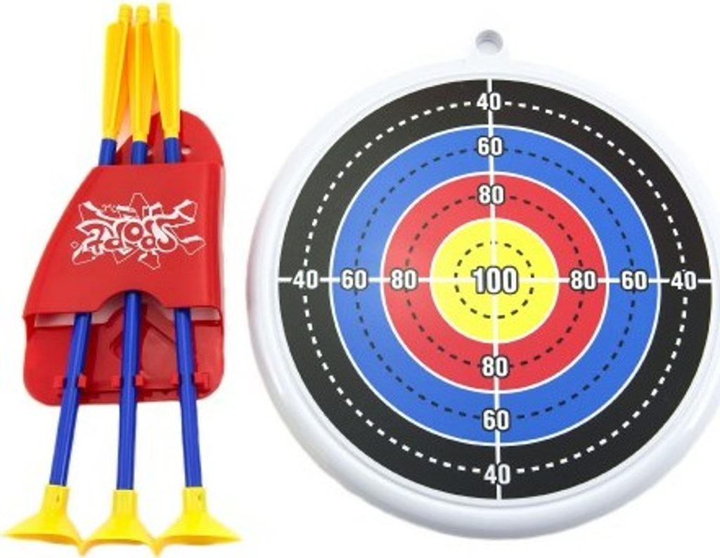 Plastový set s lukem, šípy a terčem určený pro malé střelce, kteří střílí se…