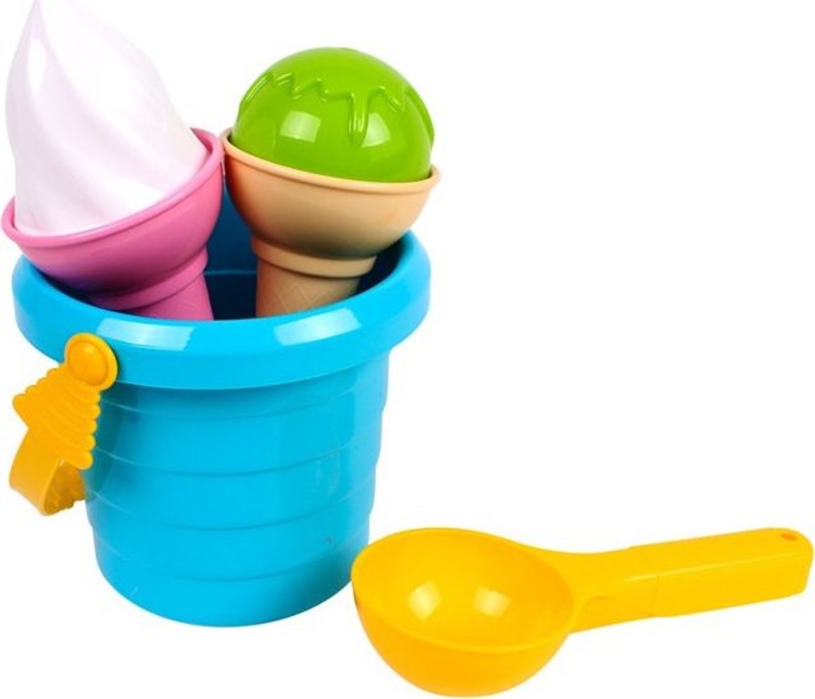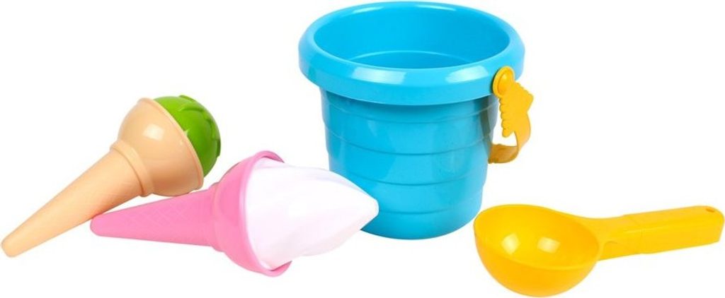 Hurá na pískoviště! Aby na něm byla dobrá zábava, nesmí tam chybět hračky na písek, které patří nepochybně mezi nejoblíbenější venkovní hračky. Sada obsahuje kyblíček, naběračku na zmrzlinu a bábovky v podobě zmrzlinového kornoutu a kopečků.