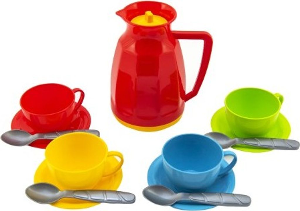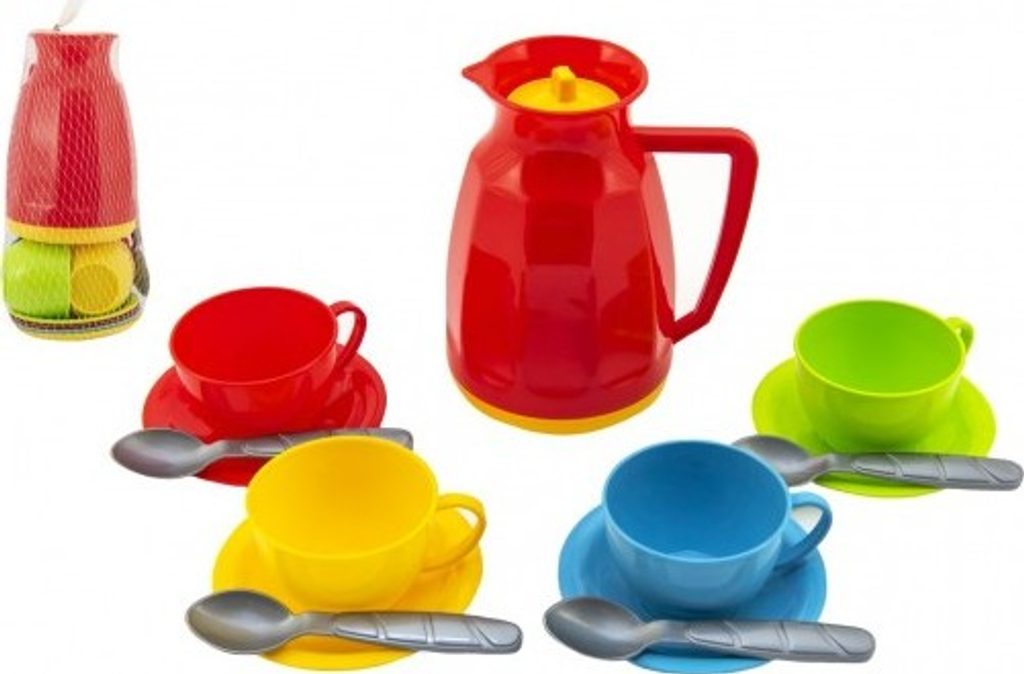 Čajová souprava je nezbytné vybavení každého dětského pokoje. Každá malá hospodyňka ho musí mít ve své kuchyňce, aby mohla slavnostně pohostit každou návštěvu! Čajová souprava umožňuje hrát si o samotě i s přáteli. Dítě může připravit čaj pro panenky, medvídka nebo sourozence či rodiče. Sada podporuje představivost a rozvíjí dětskou fantazii a díky barevnému designu se zalíbí každé malé slečně, která může pozvat kamarádky a uspořádat nezapomenutelný čajový dýchánek. Souprava obsahuje 13ks včetně čajové konvice, baleno v síťce.