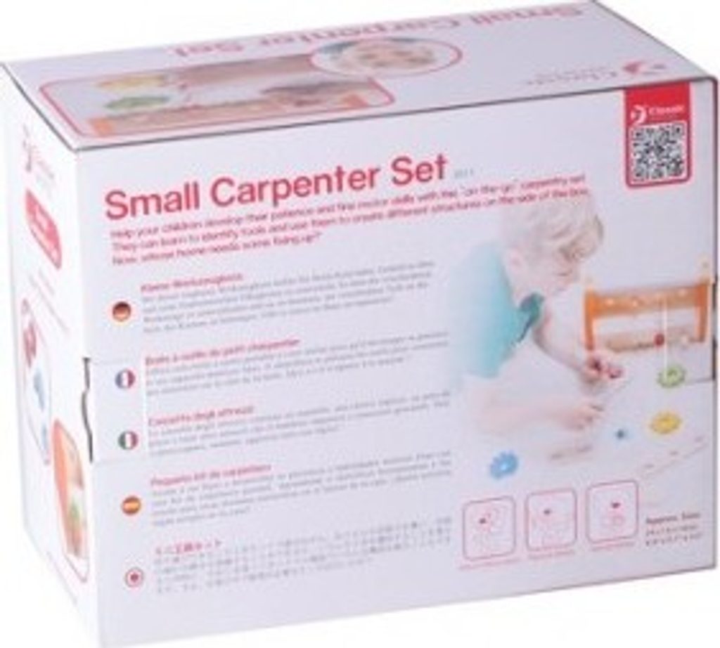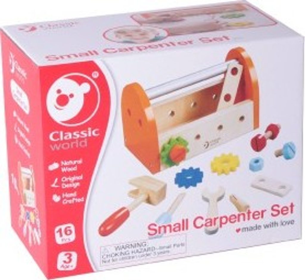 Hračka pro malé opraváře, kteří rádi pomáhají svým tatínkům. Sada pro malého truhláře obsahuje 16 kusů nářadí. Rozvíjí představivost, trénuje zručnost. Hračka pomáhá rozvíjet technické chápání a jemnou motoriku rukou. Nářadí vyrobeno z kvalitního dřeva.