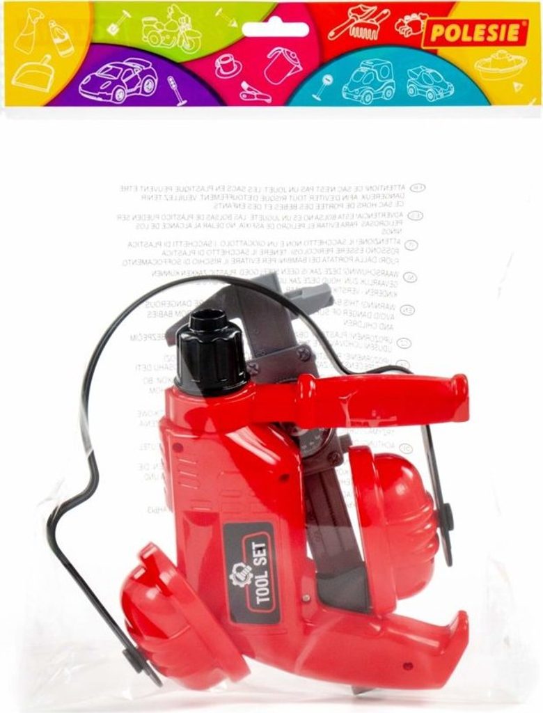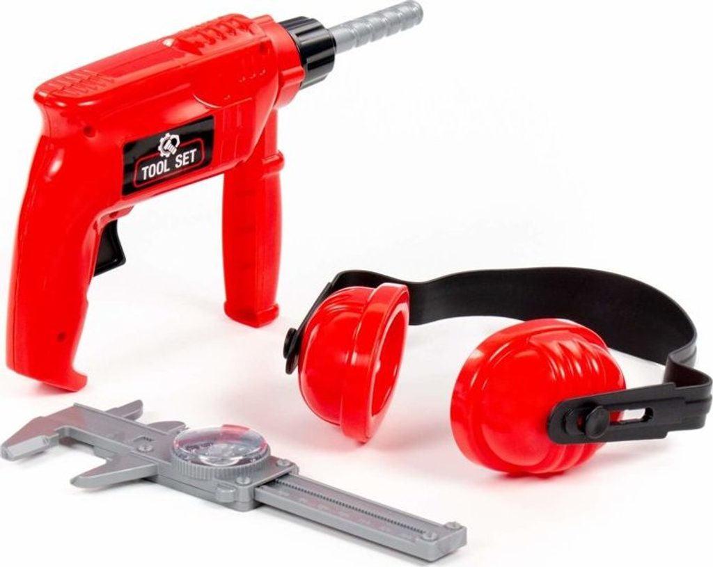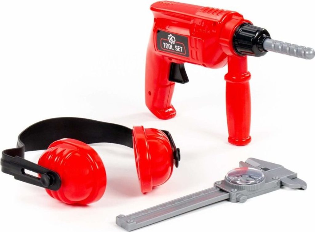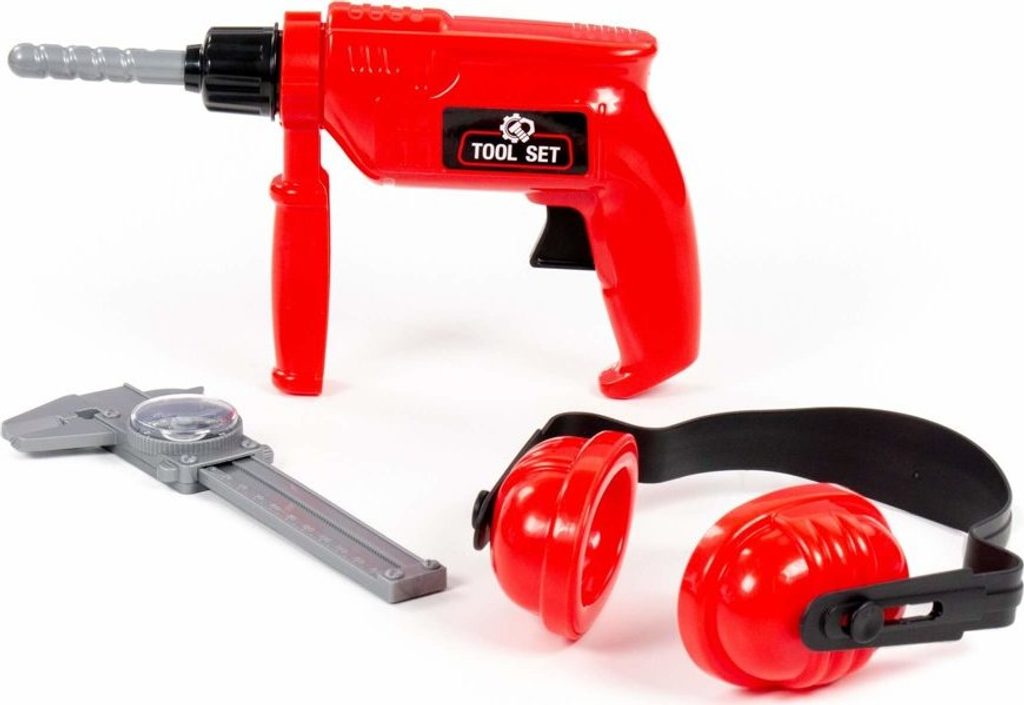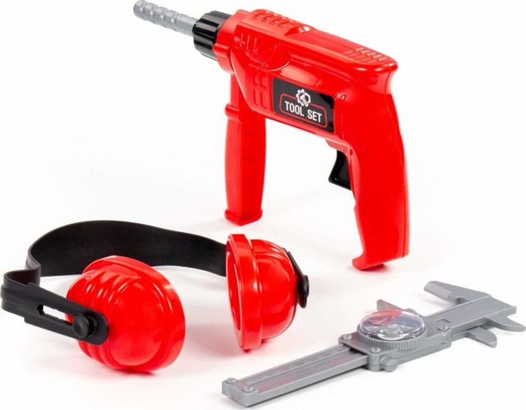Sada obsahuje vrtačku, stisknutím tlačítka se začne otáčet. Abyste se chránili před hlukem, může si kutil nasadit chrániče sluchu. Posuvné měřítko vám umožní přesně změřit místo pro vyvrtání otvoru.